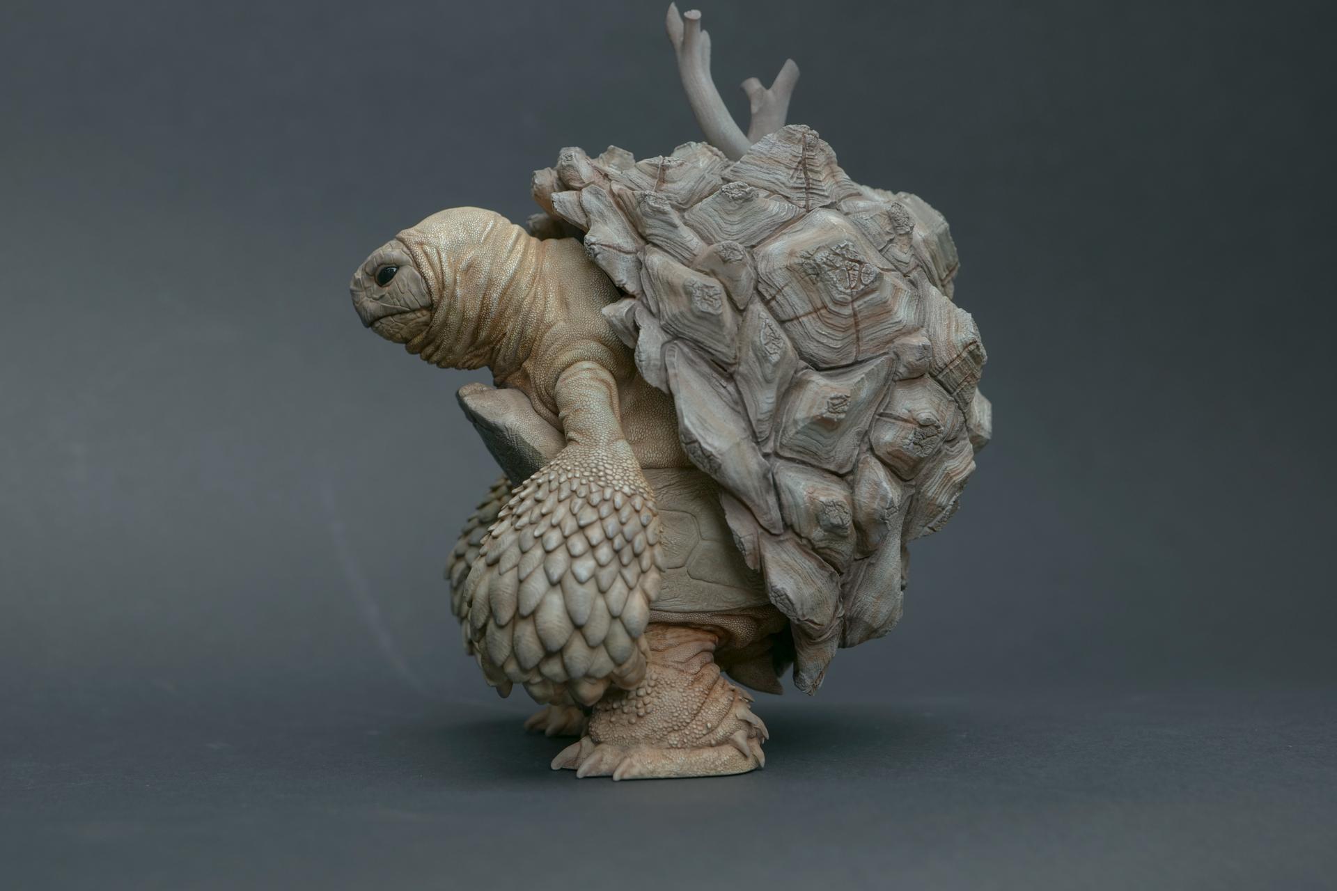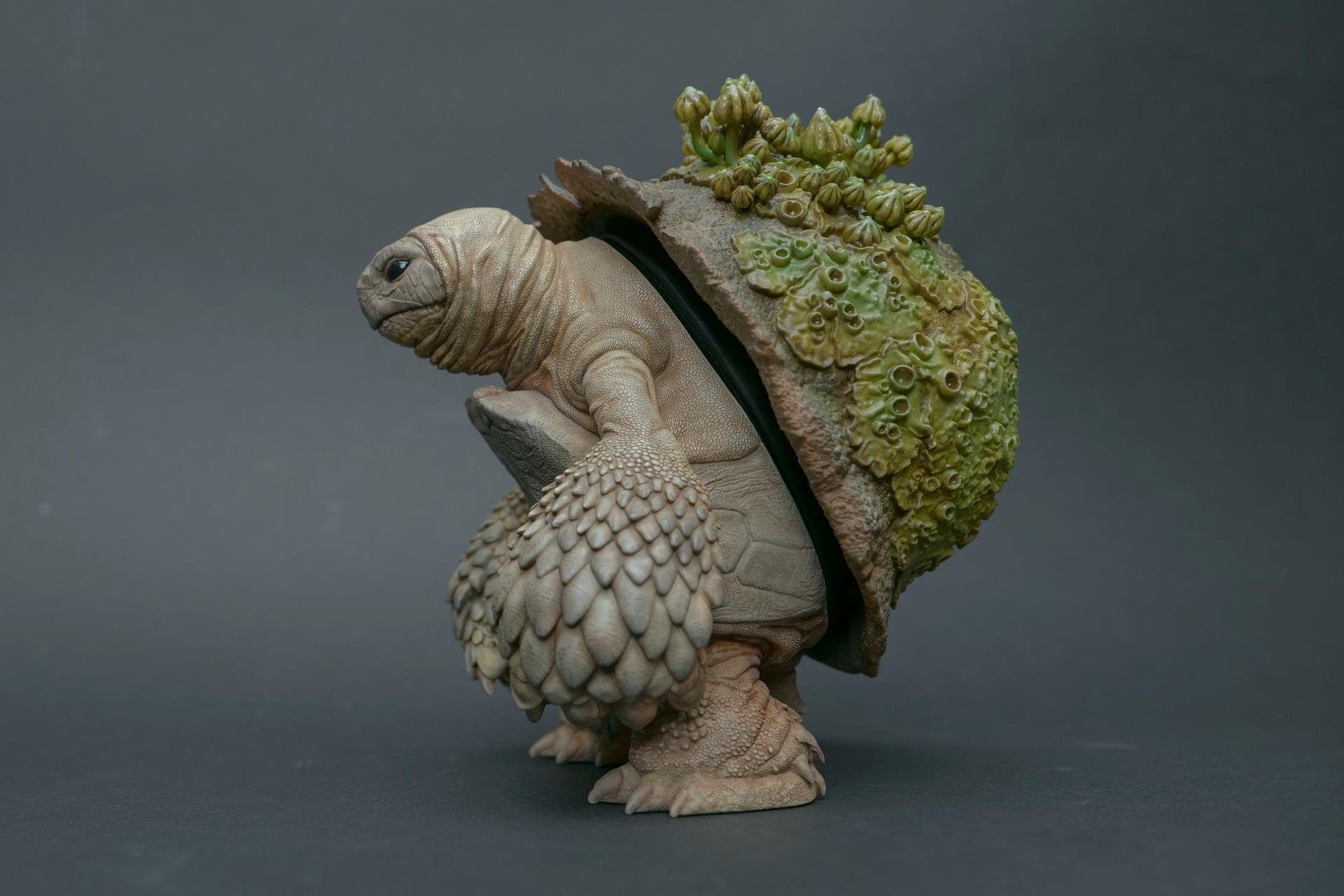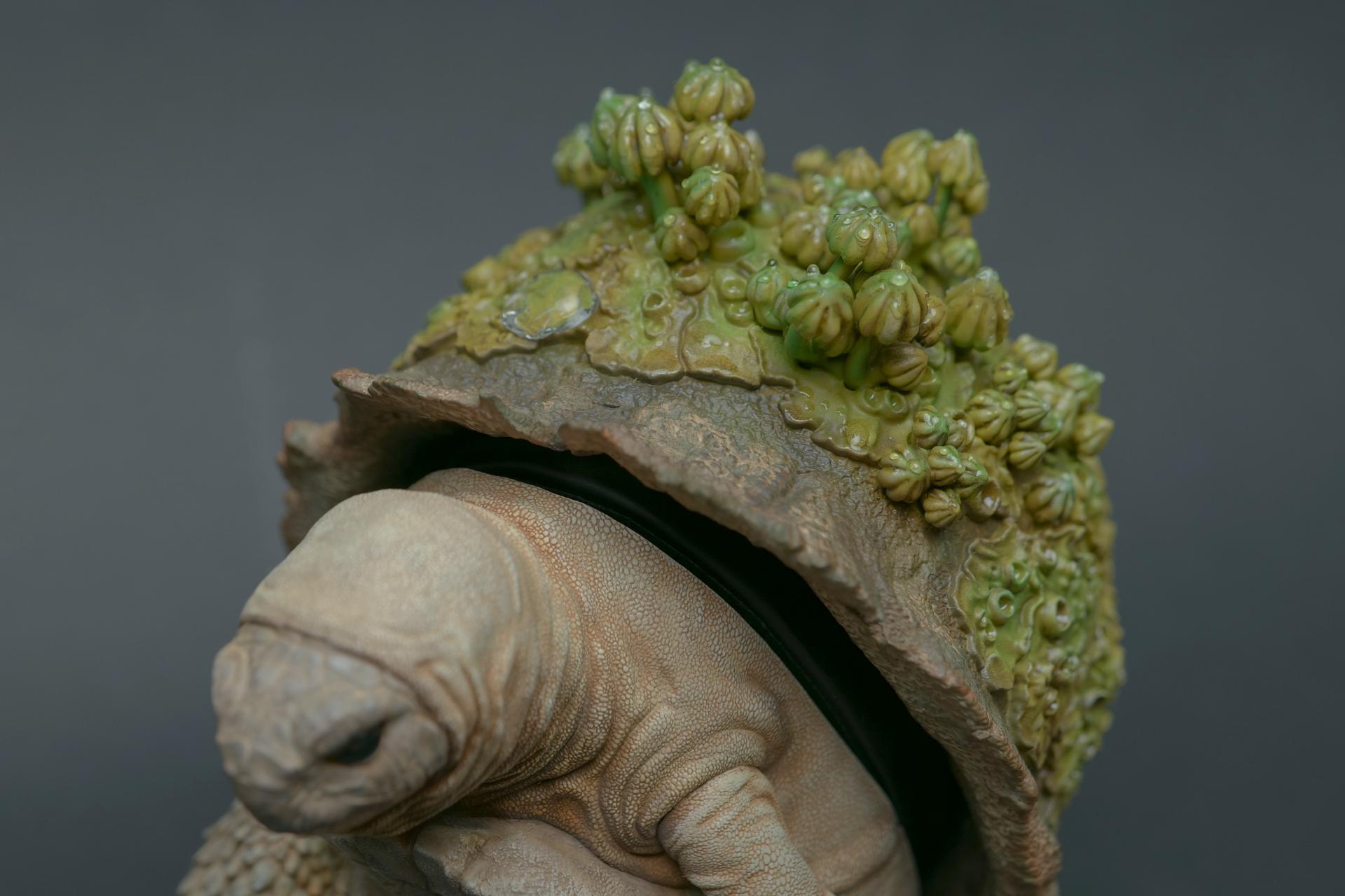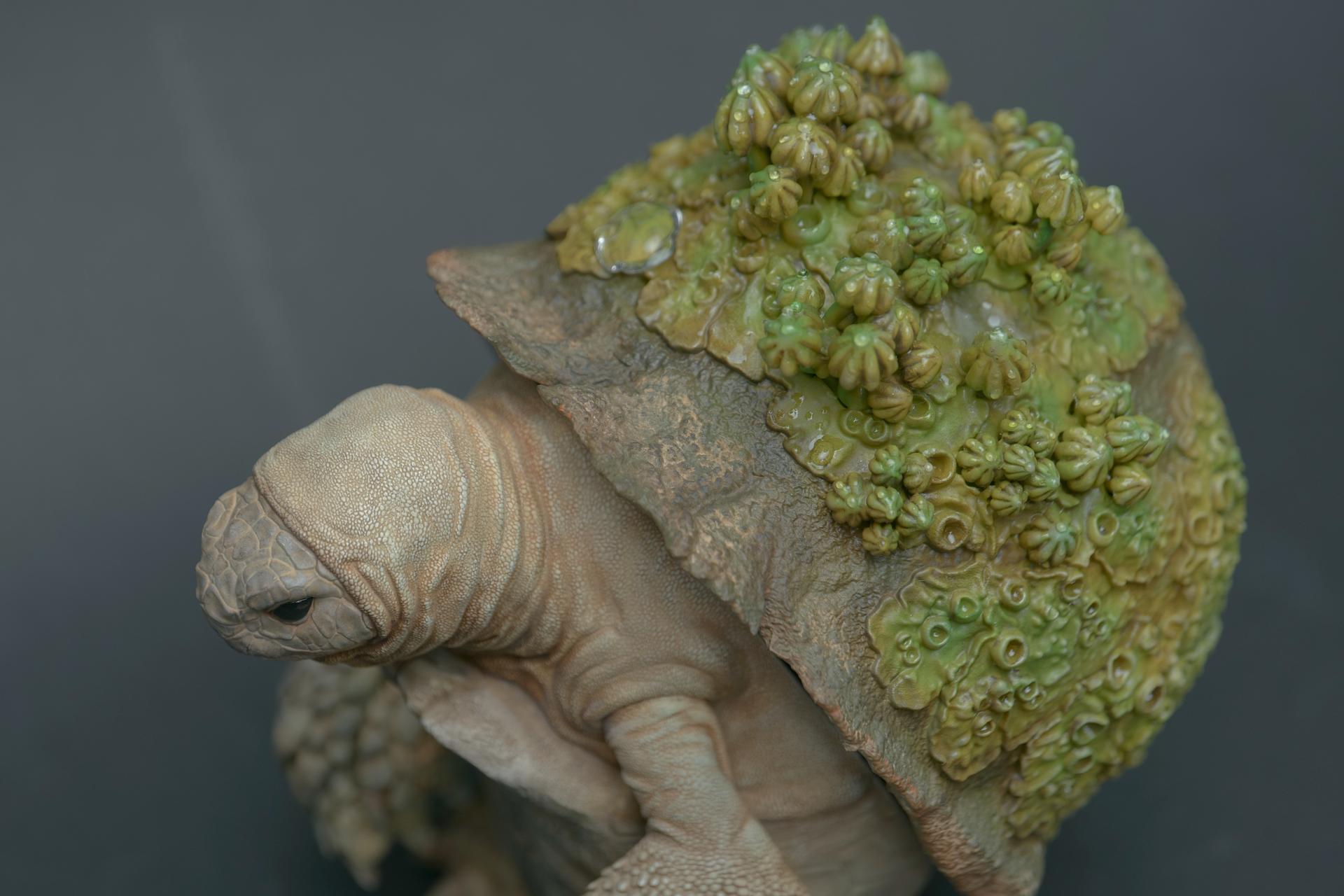作品中,恢复环境的海龟代表了艺术家对希望和积极改变的信念。