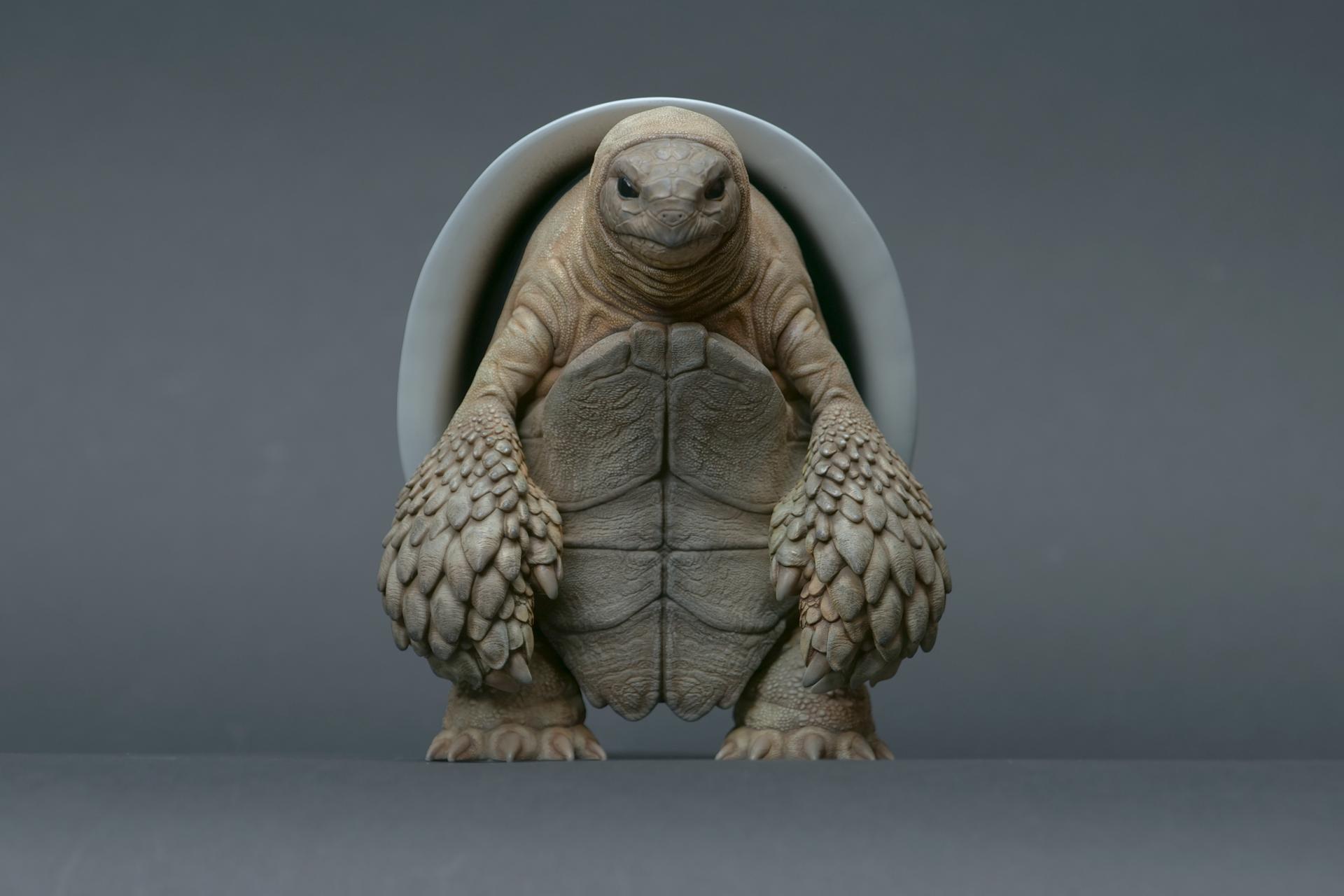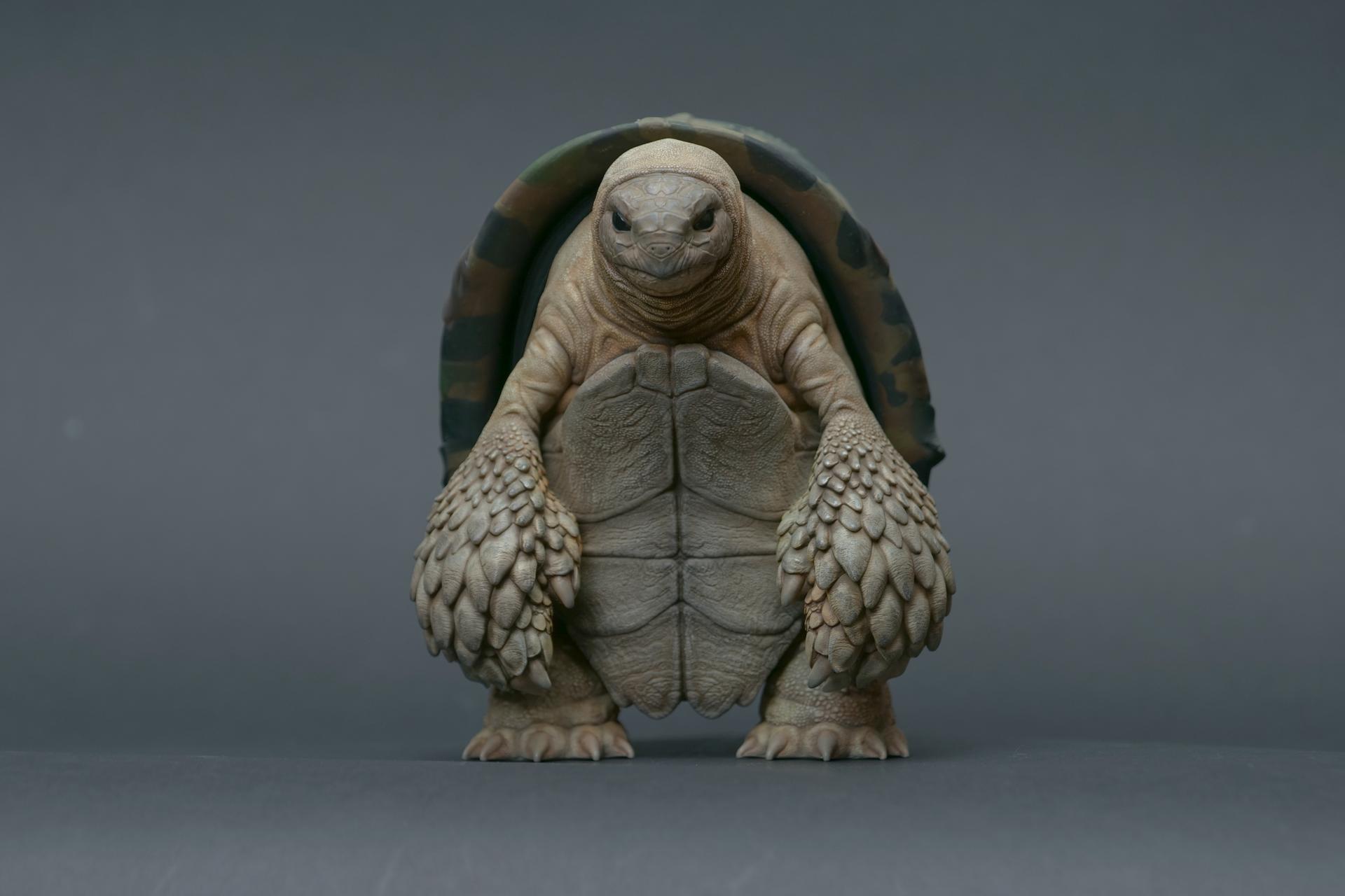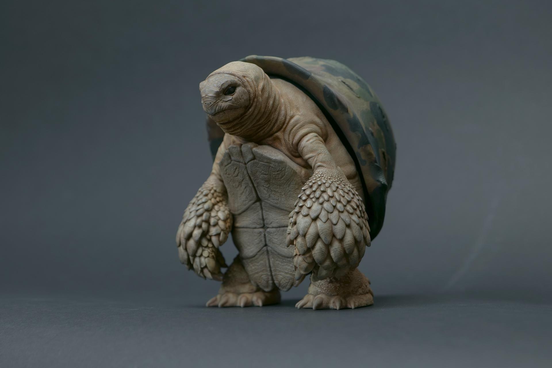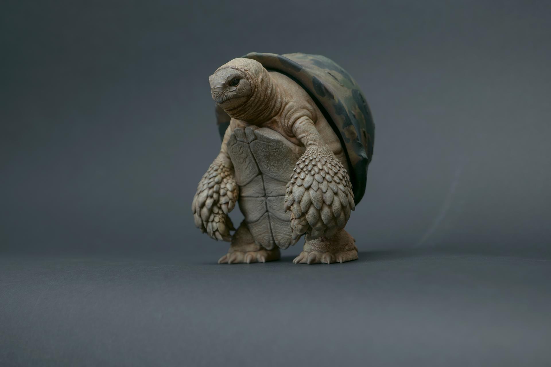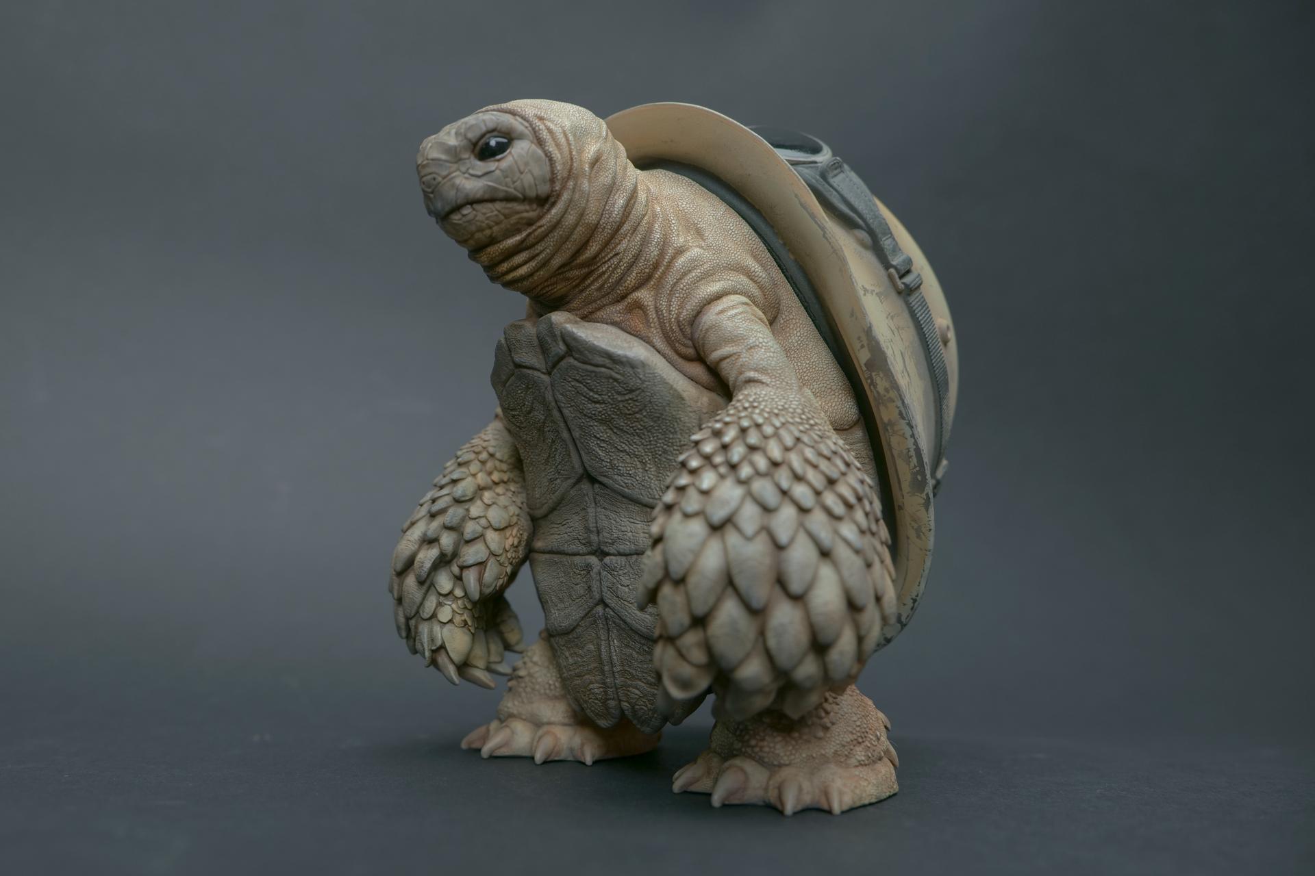 カメが身に着けているヘルメットは、物理的な保護とともに精神的安定を象徴しますが、同時に人間の恐怖や不安に対するメッセージを伝えることもあります。