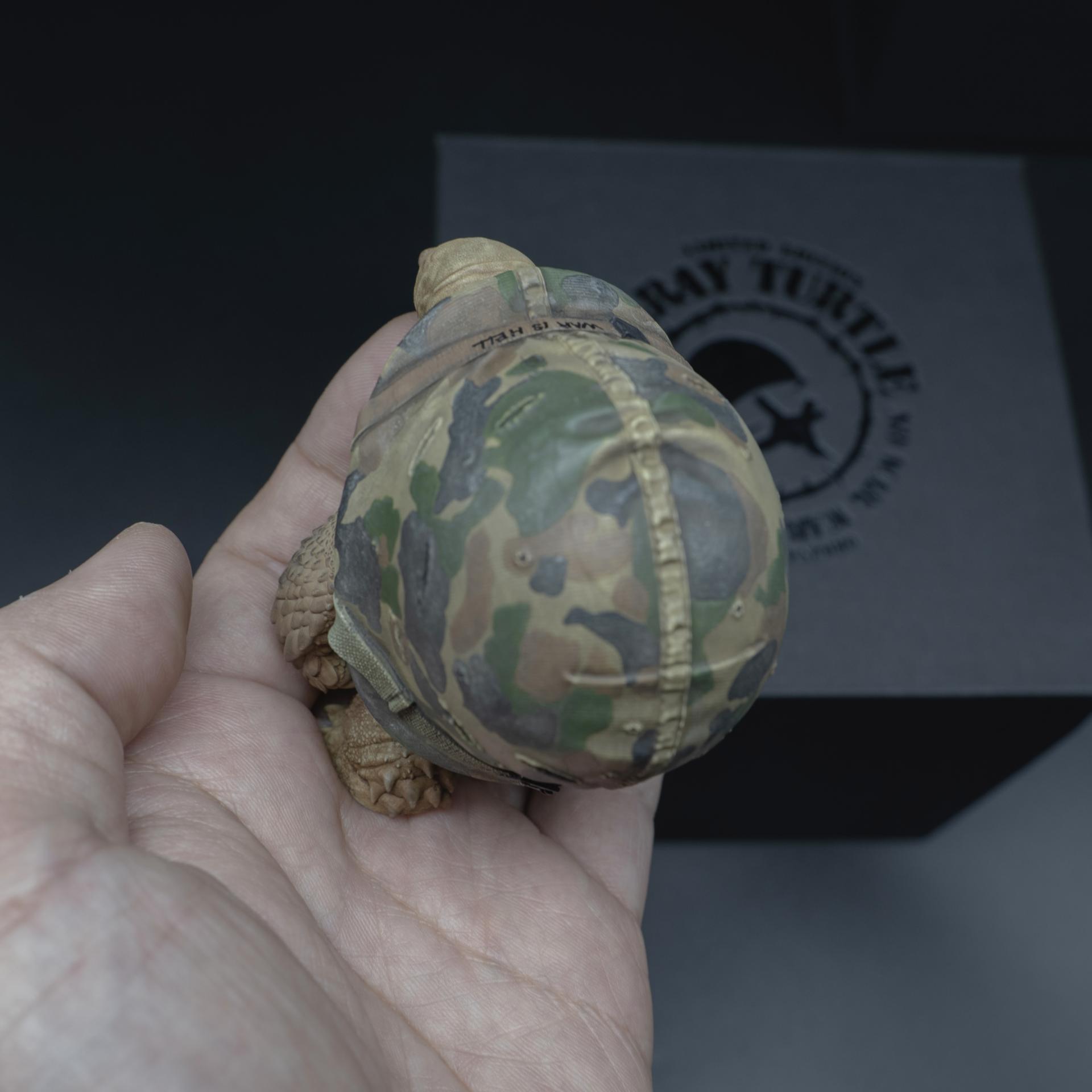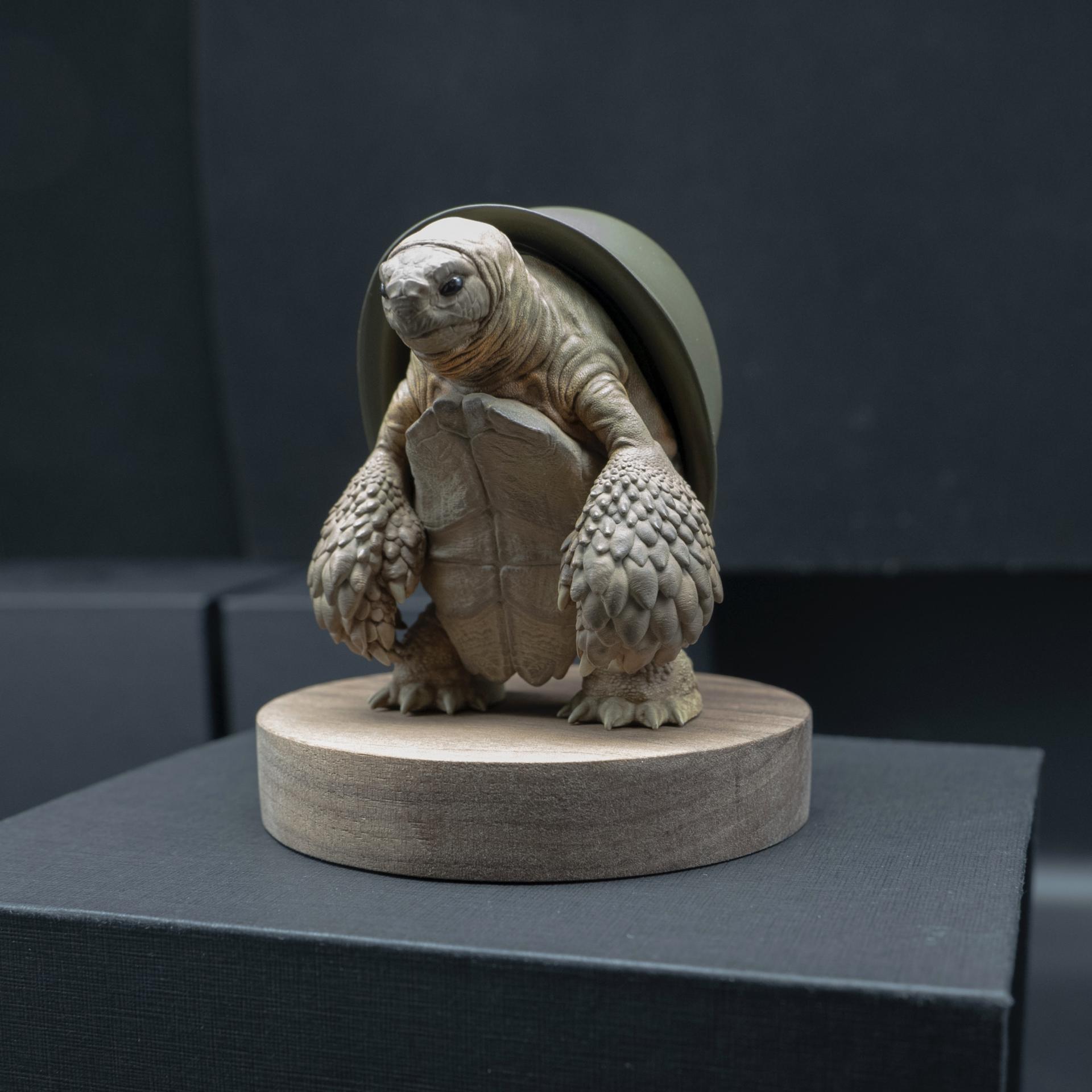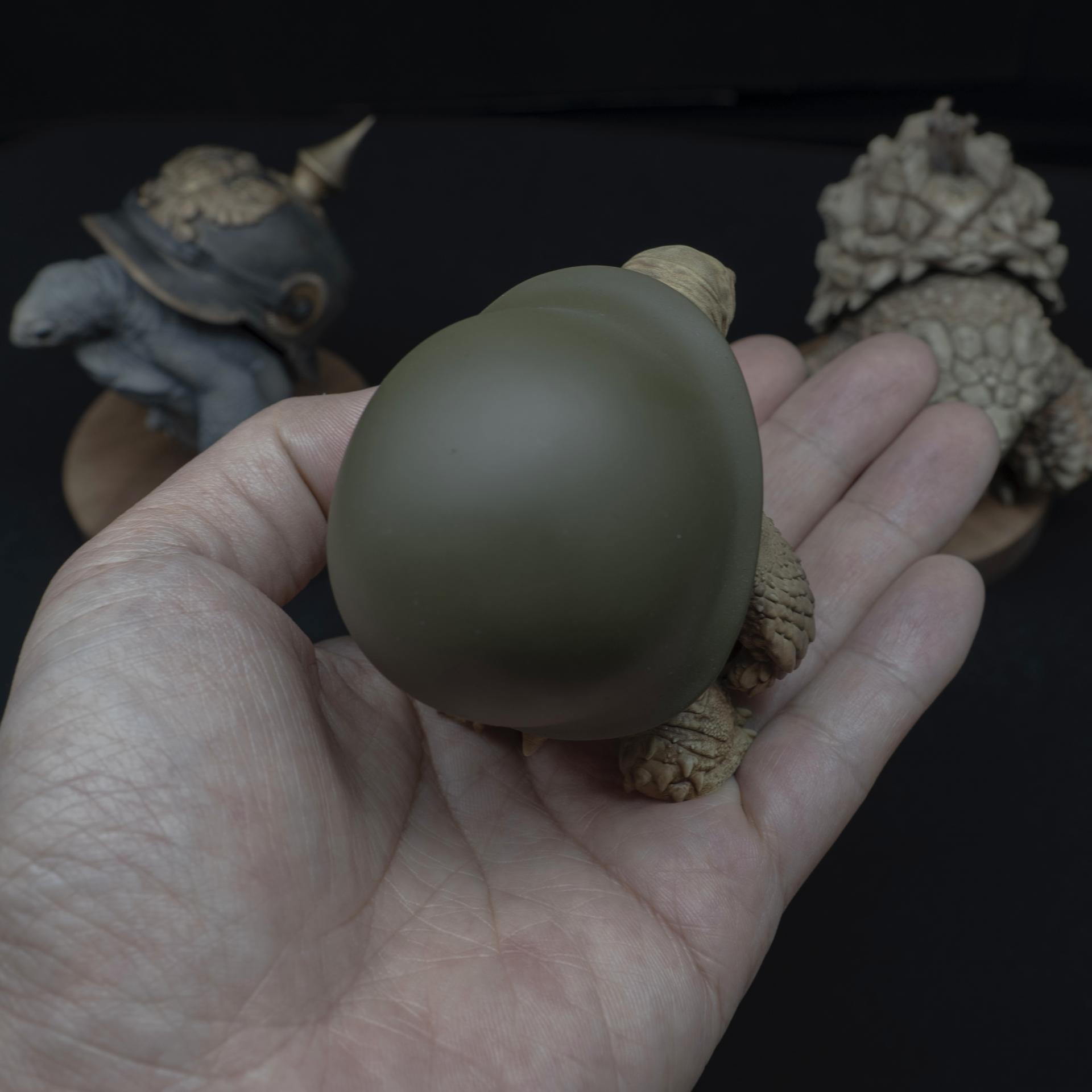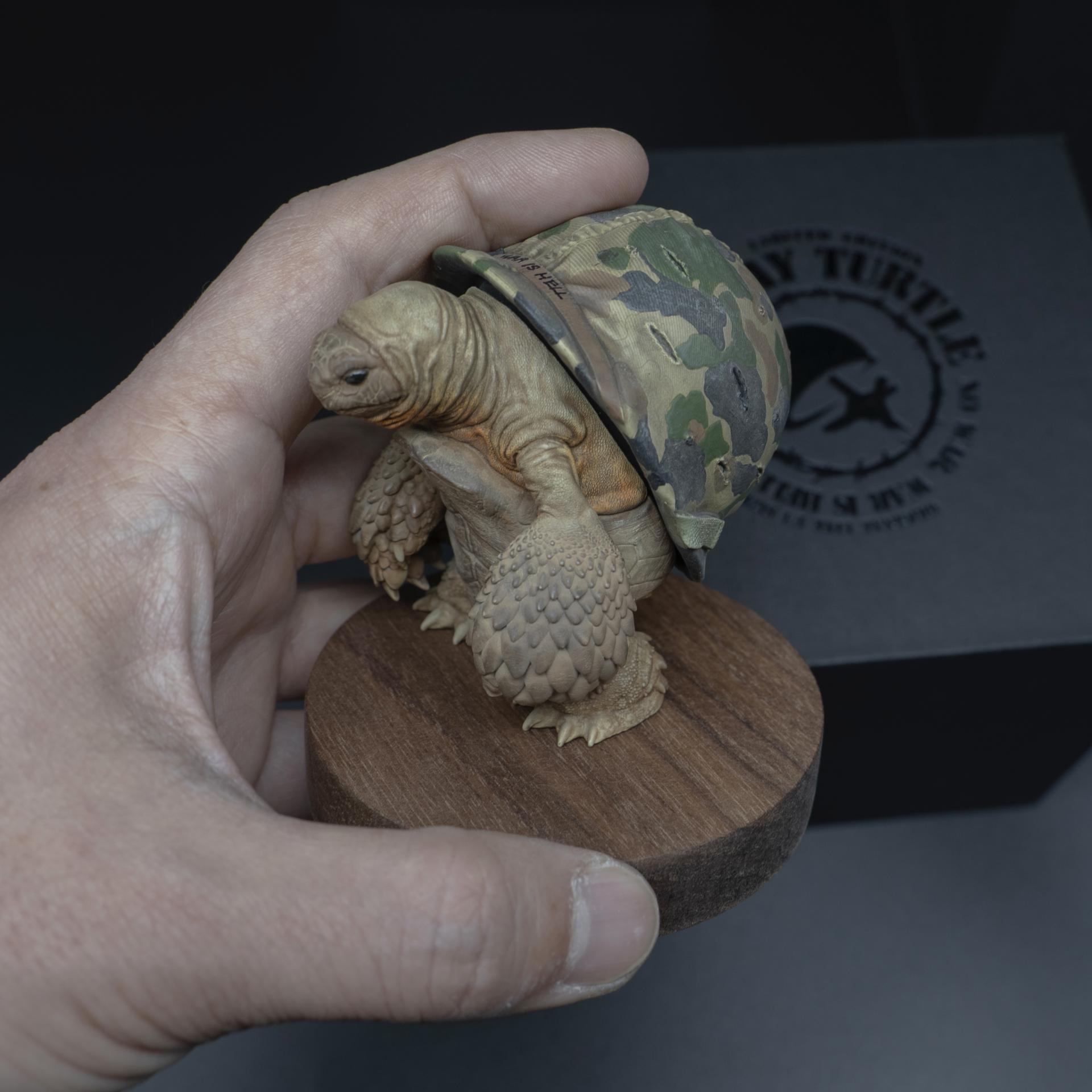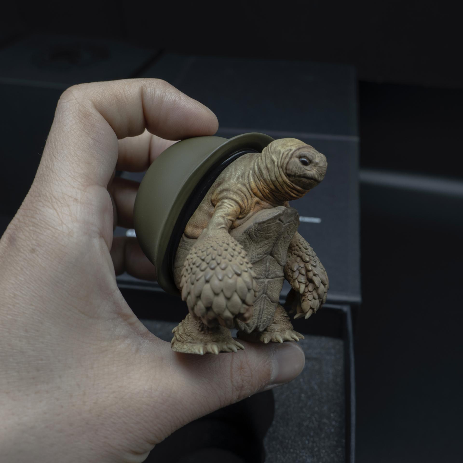 海龟佩戴的头盔象征着精神稳定和身体保护,但它们也传达了关于人类恐惧和焦虑的信息。