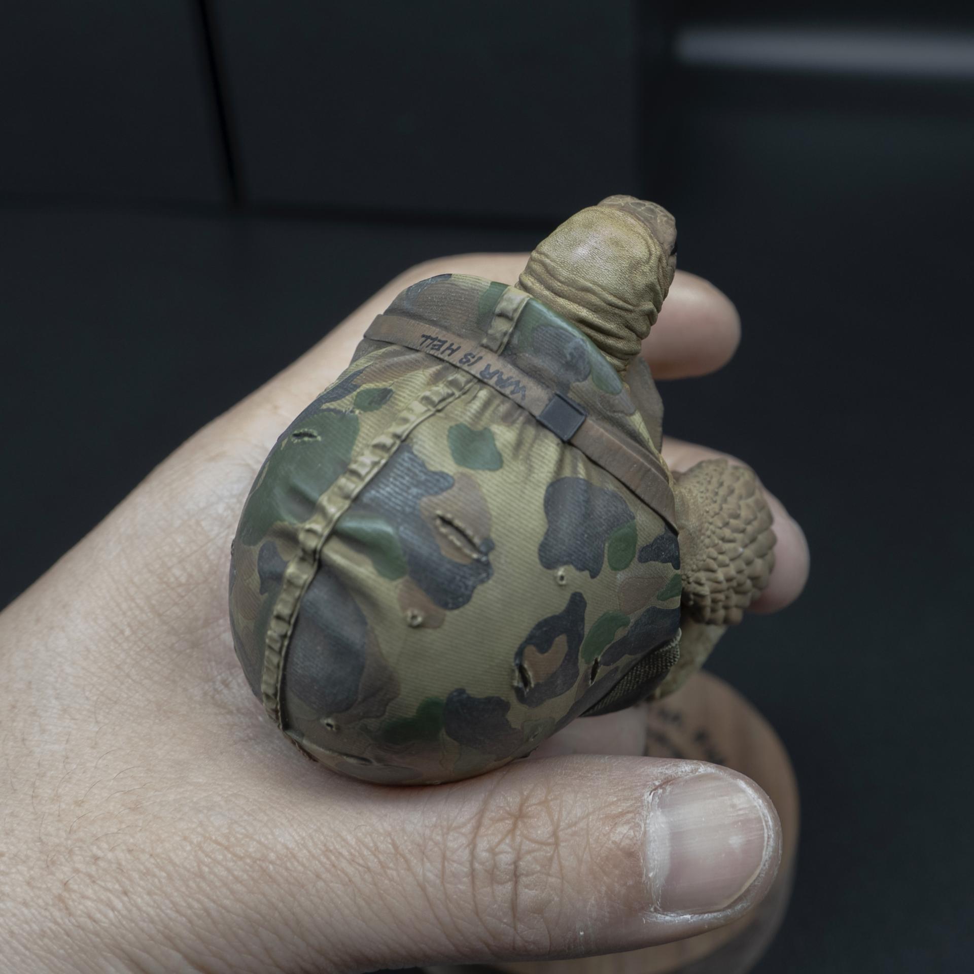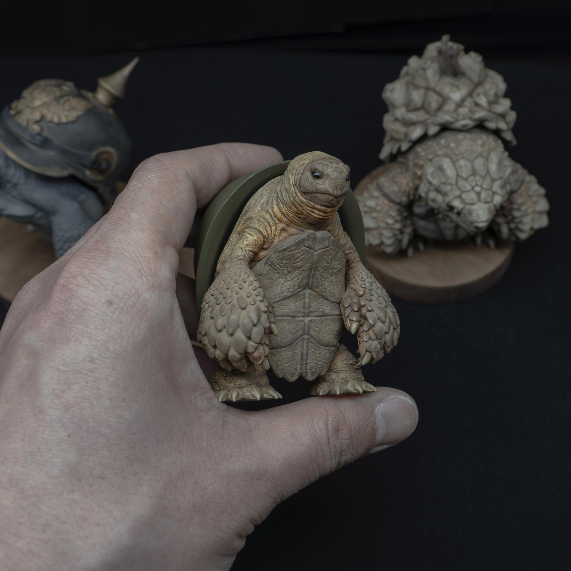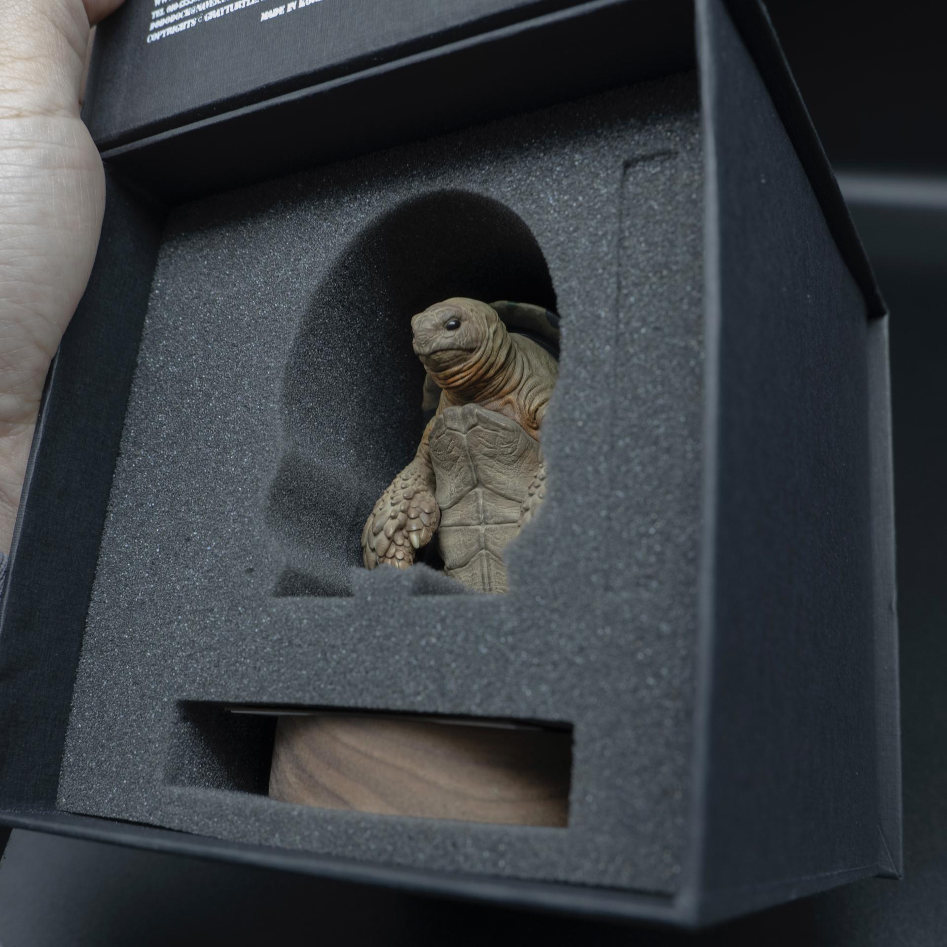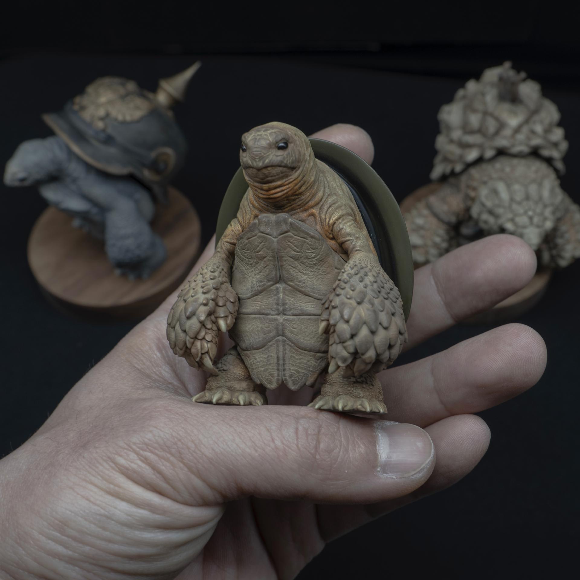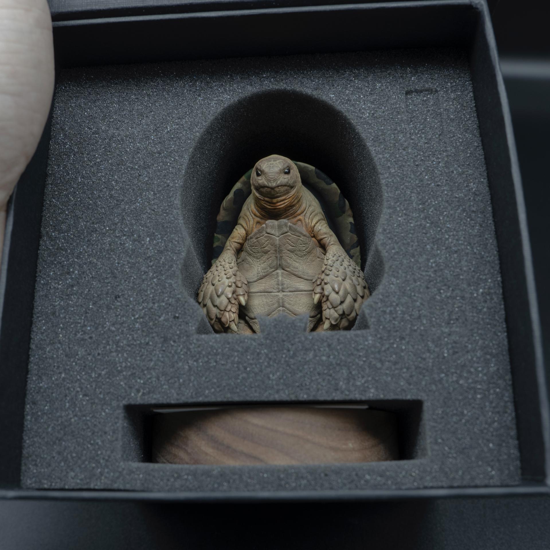 海龟佩戴的头盔象征着精神稳定和身体保护,但它们也传达了关于人类恐惧和焦虑的信息。