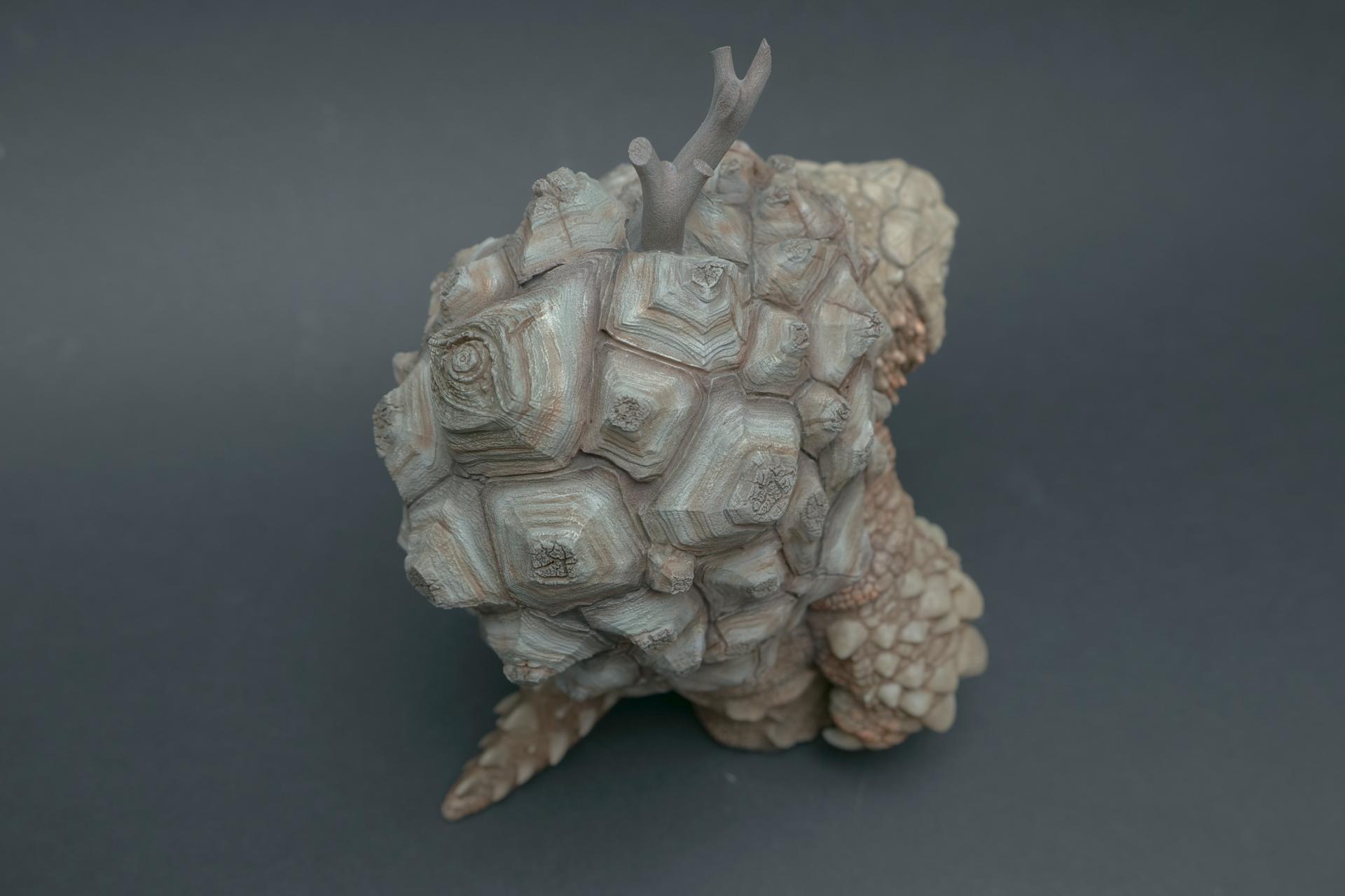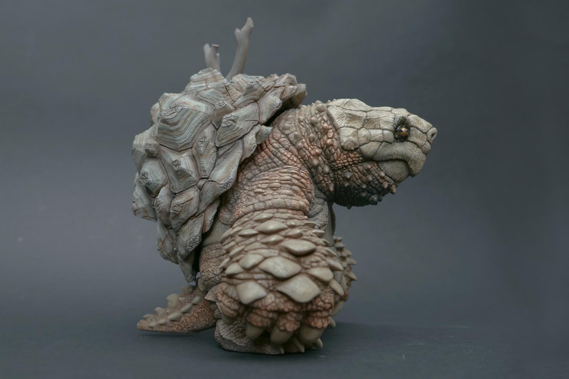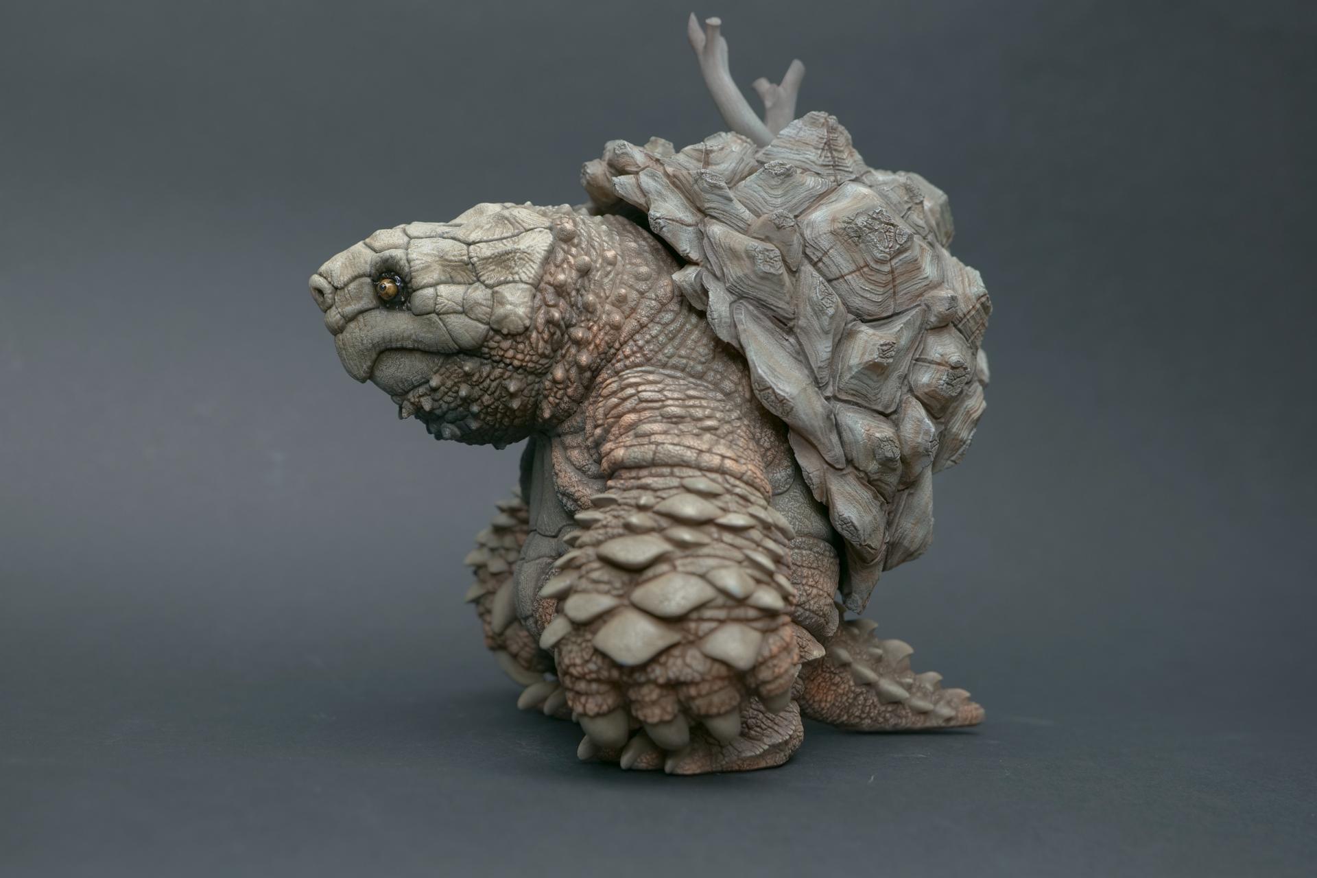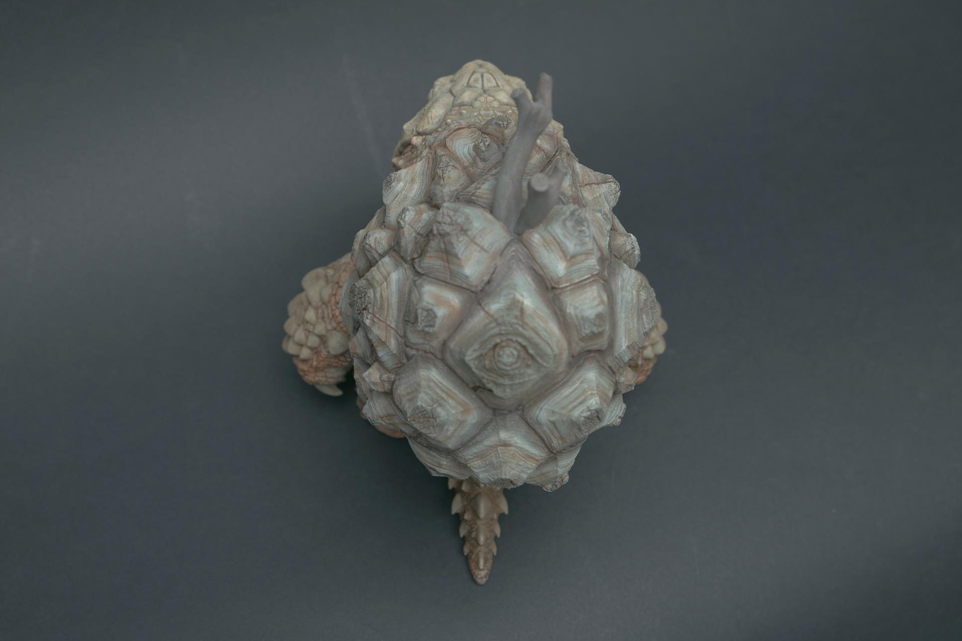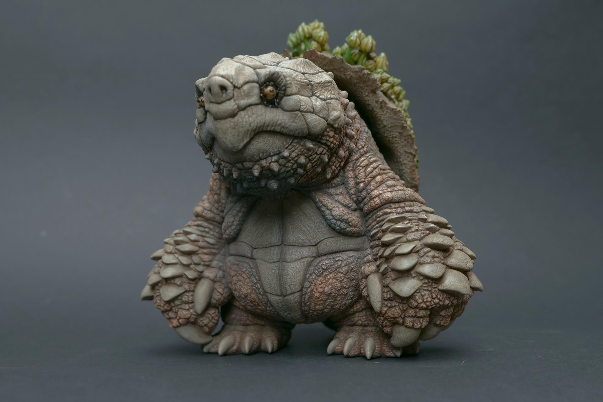 作品でカメが環境を回復させる姿は、希望と肯定的な変化に対する作家の信仰を表しています。