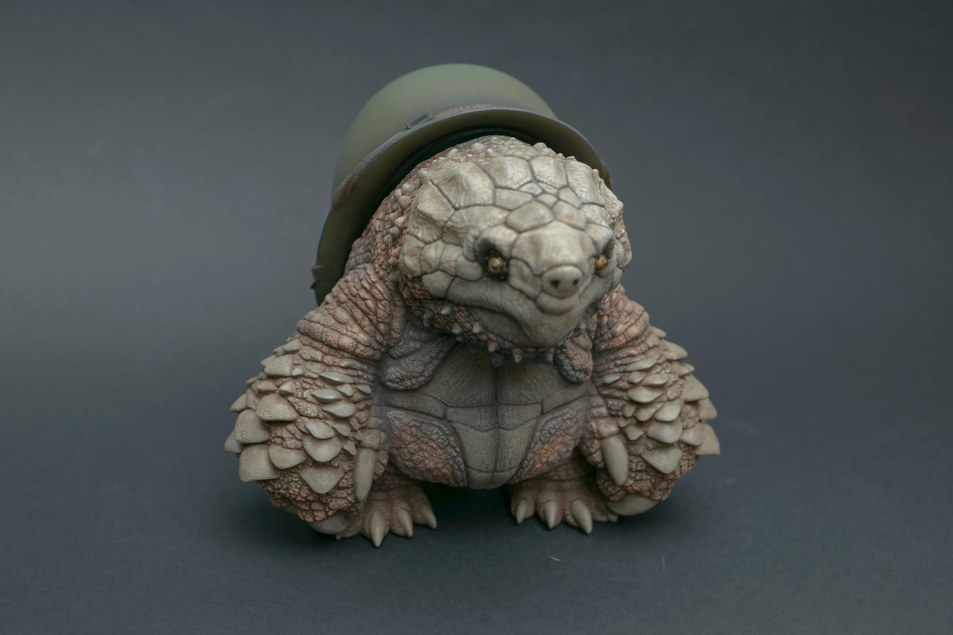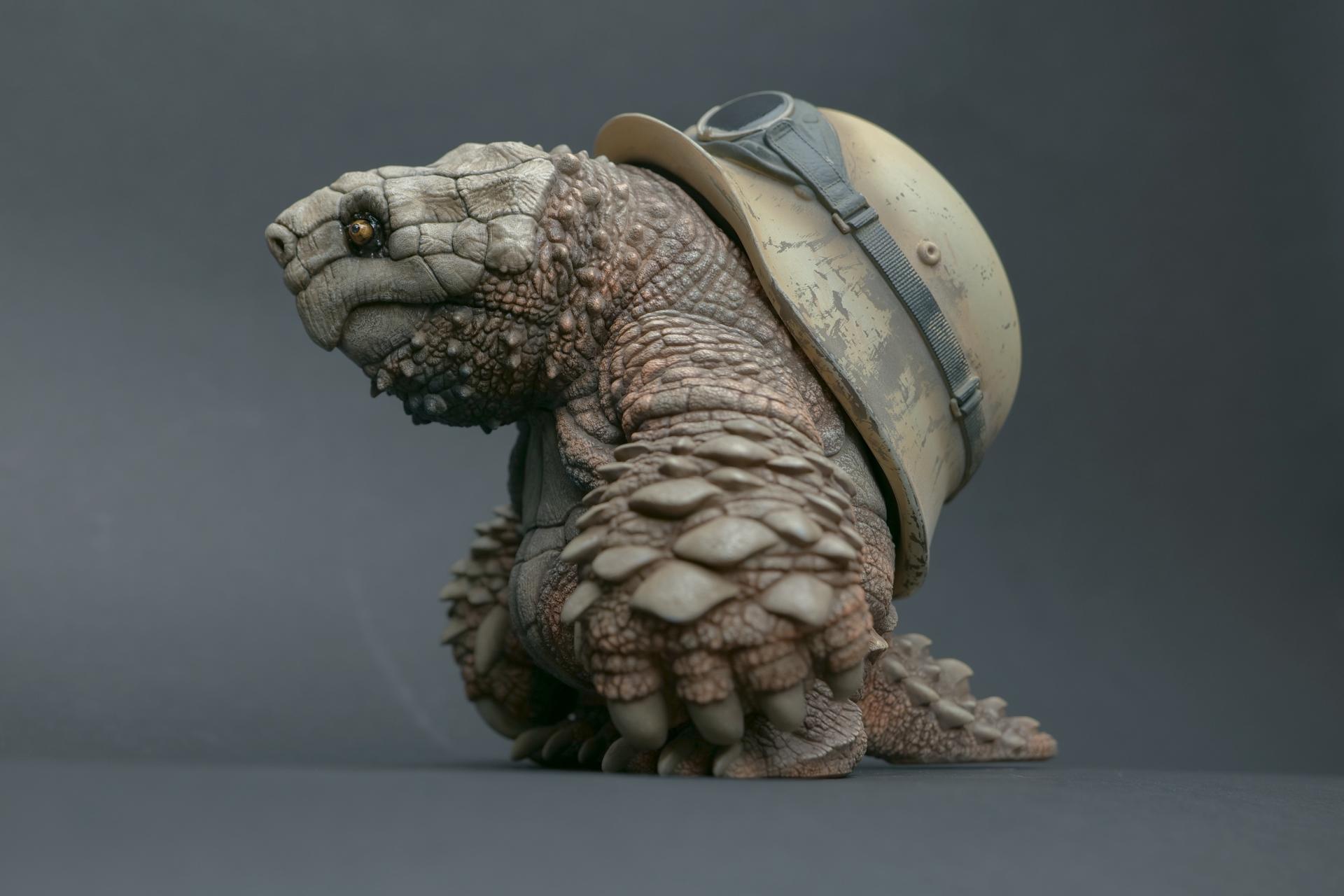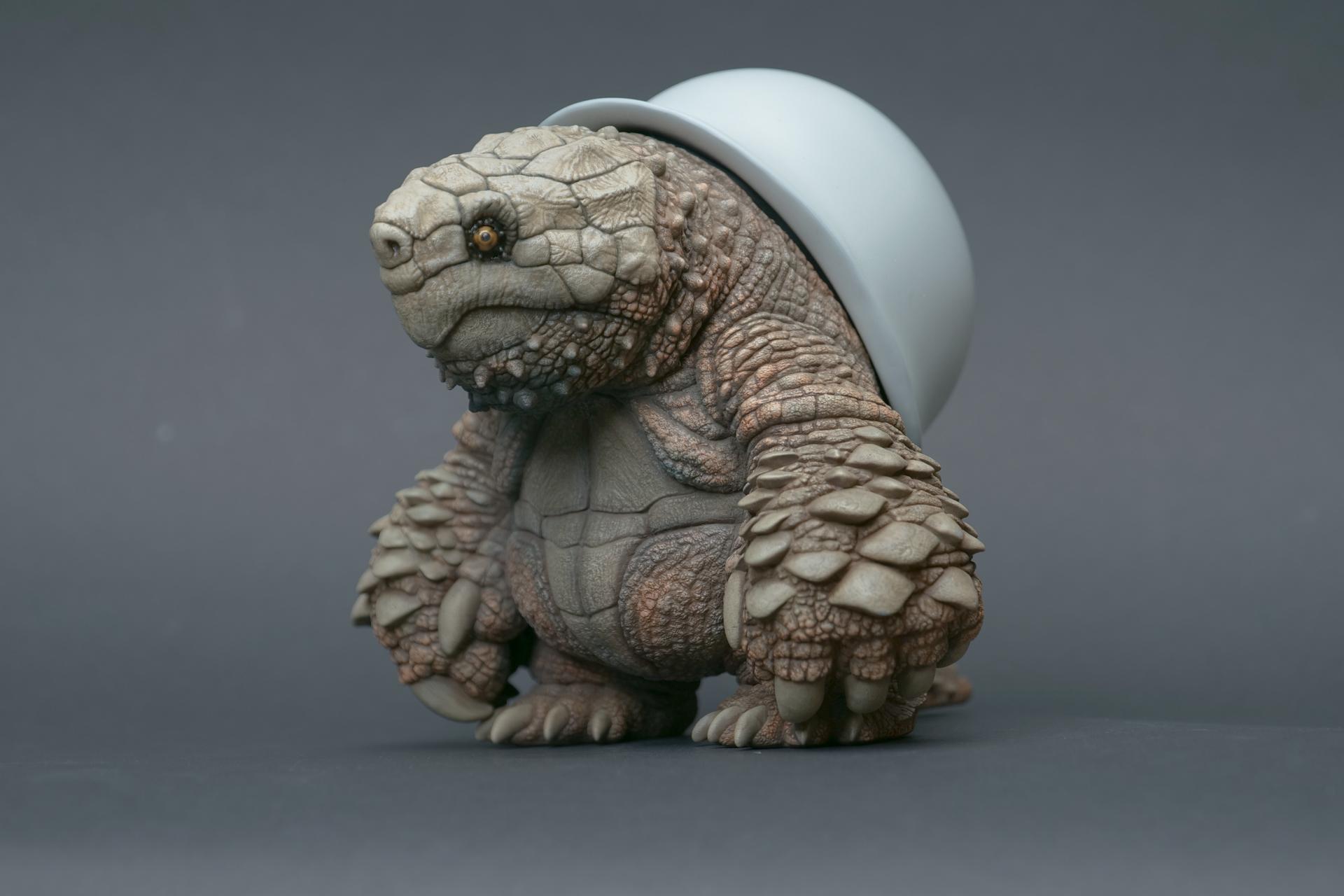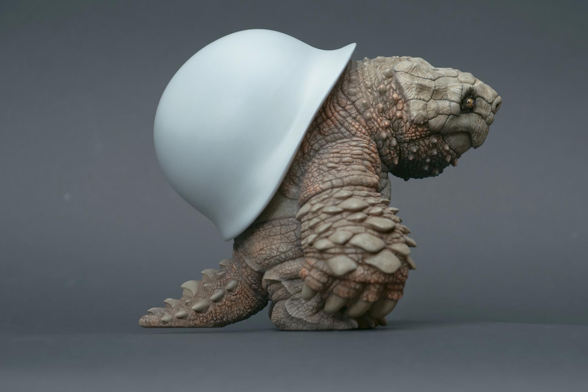 カメが身に着けているヘルメットは、物理的な保護とともに精神的安定を象徴しますが、同時に人間の恐怖や不安に対するメッセージを伝えることもあります。