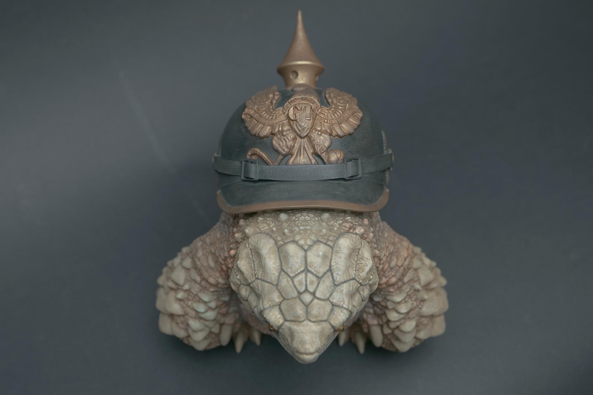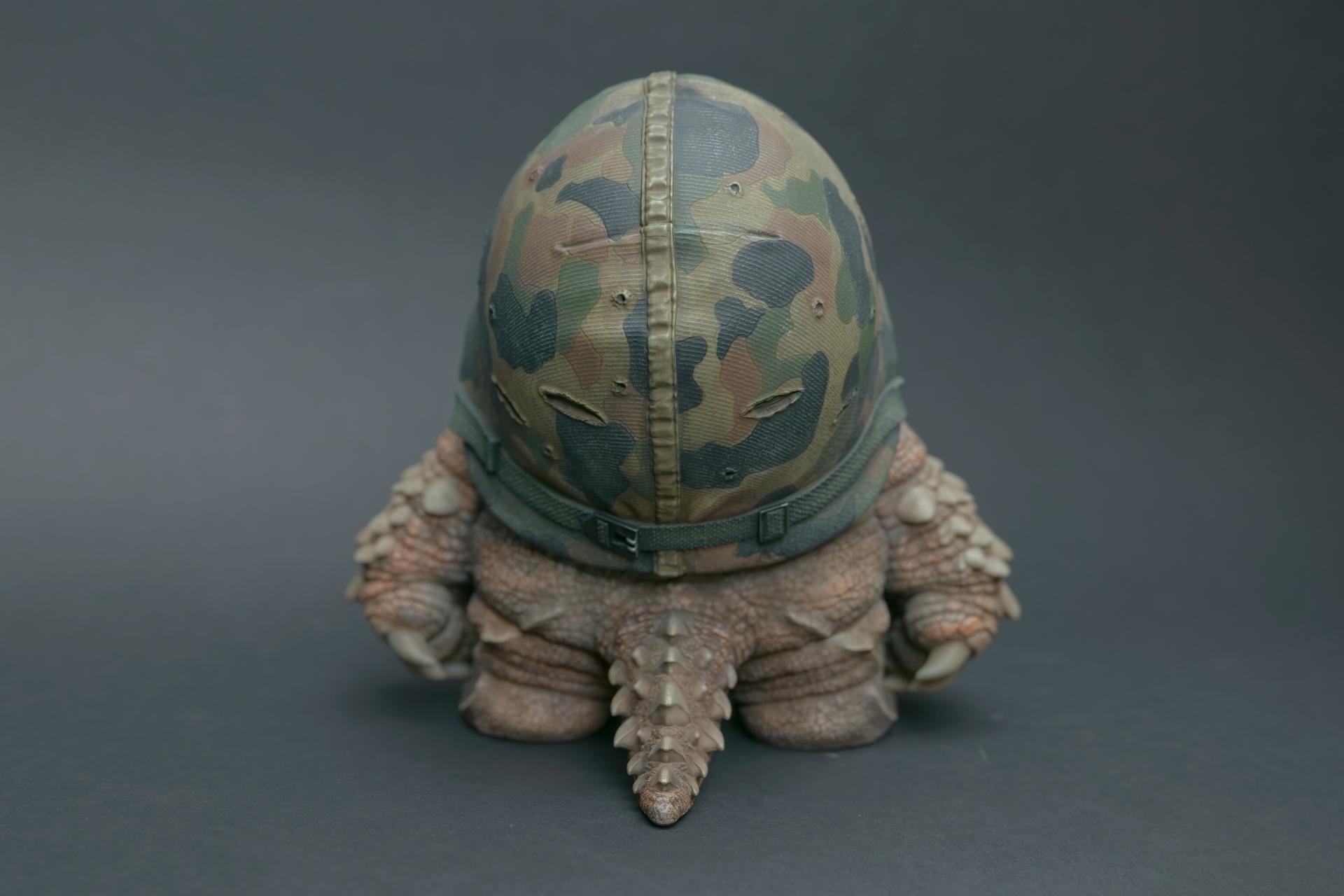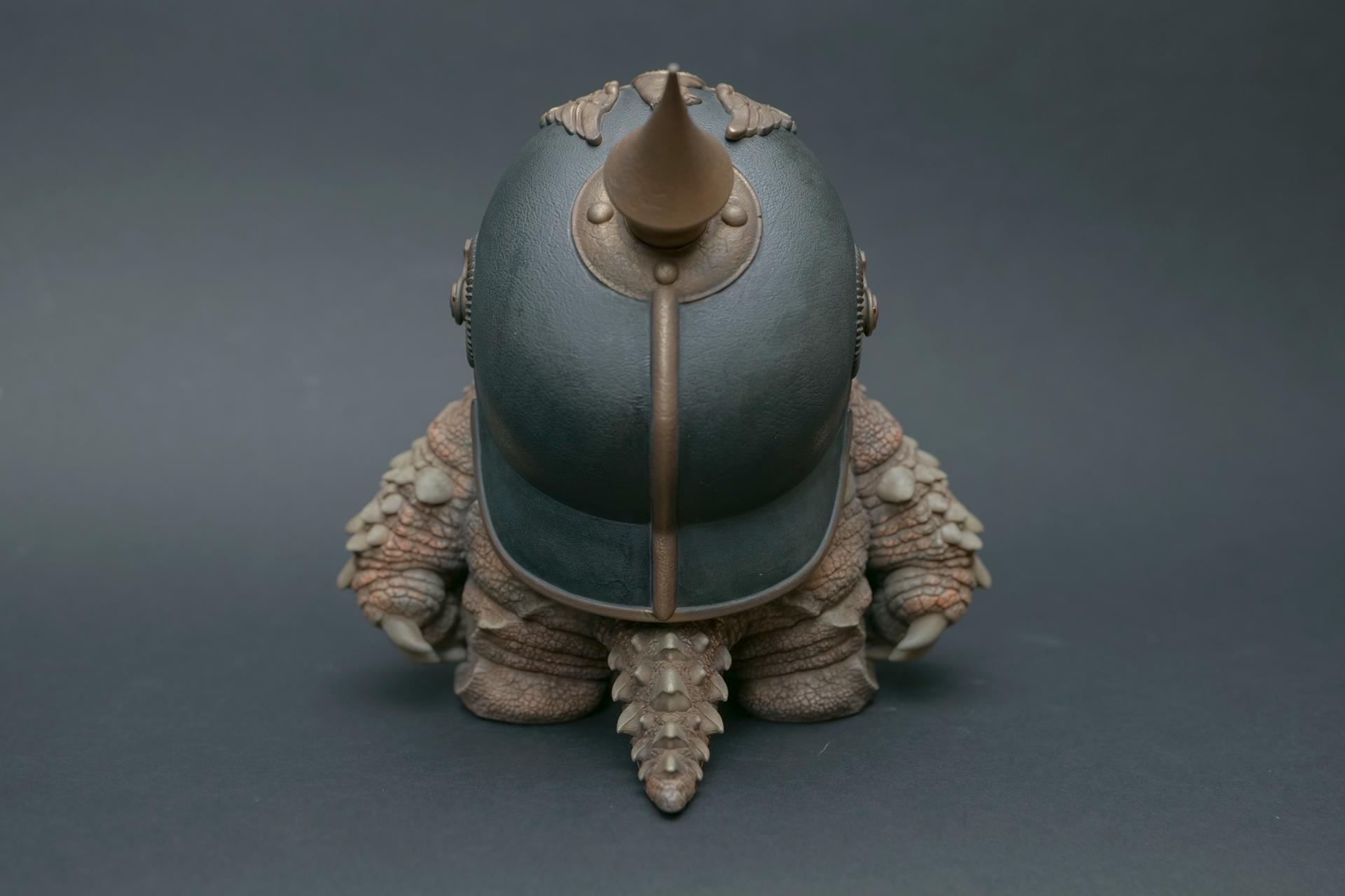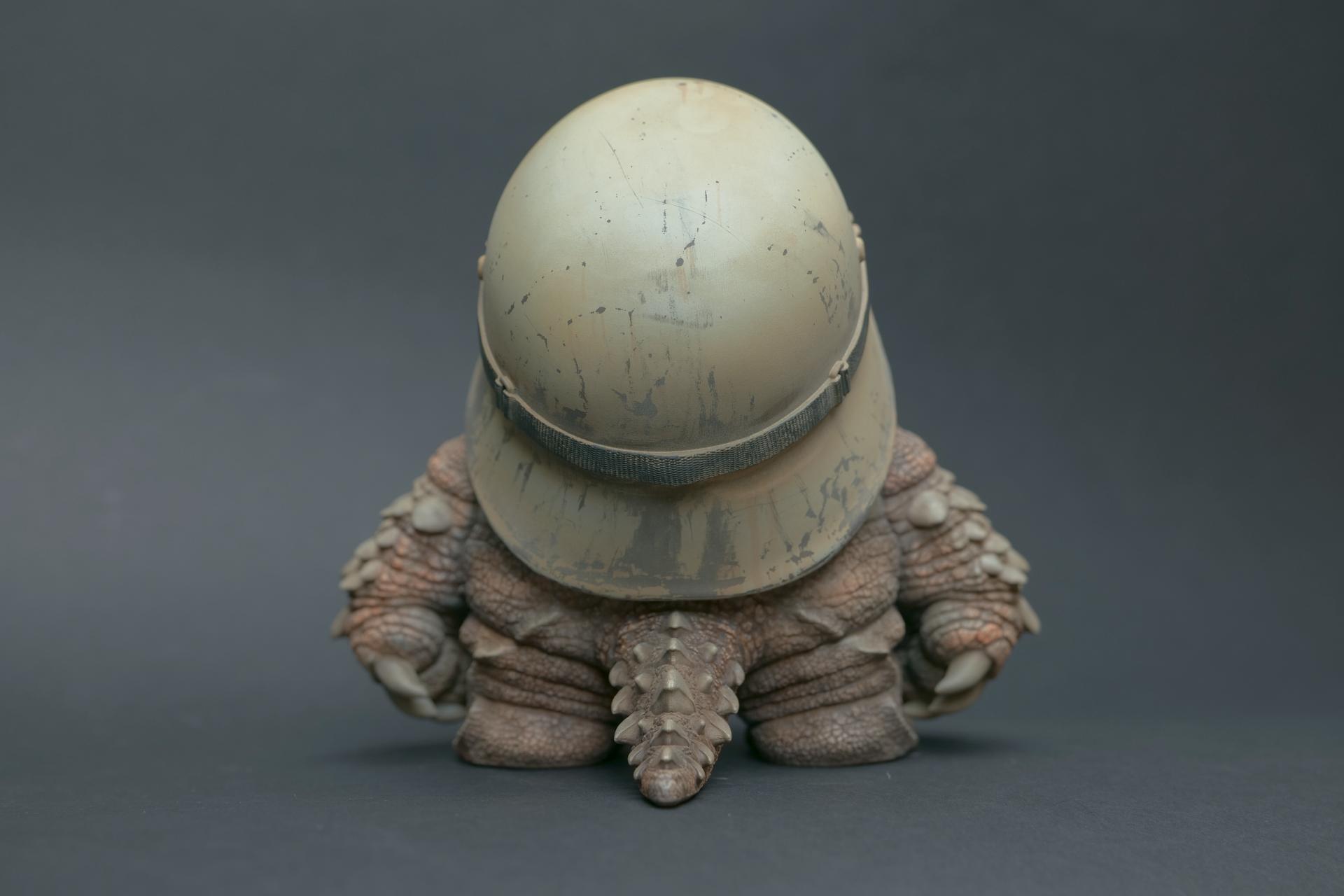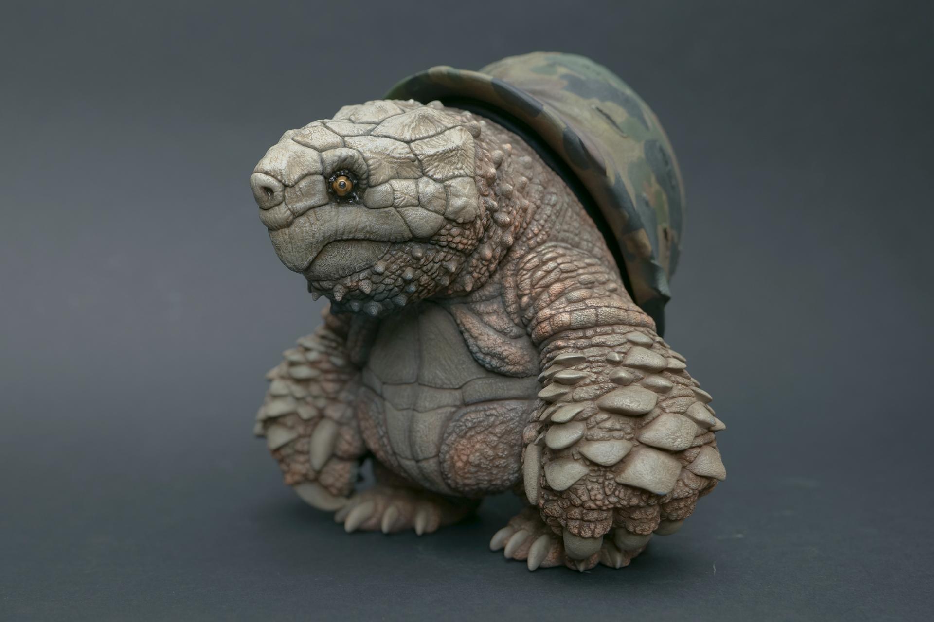カメが身に着けているヘルメットは、物理的な保護とともに精神的安定を象徴しますが、同時に人間の恐怖や不安に対するメッセージを伝えることもあります。