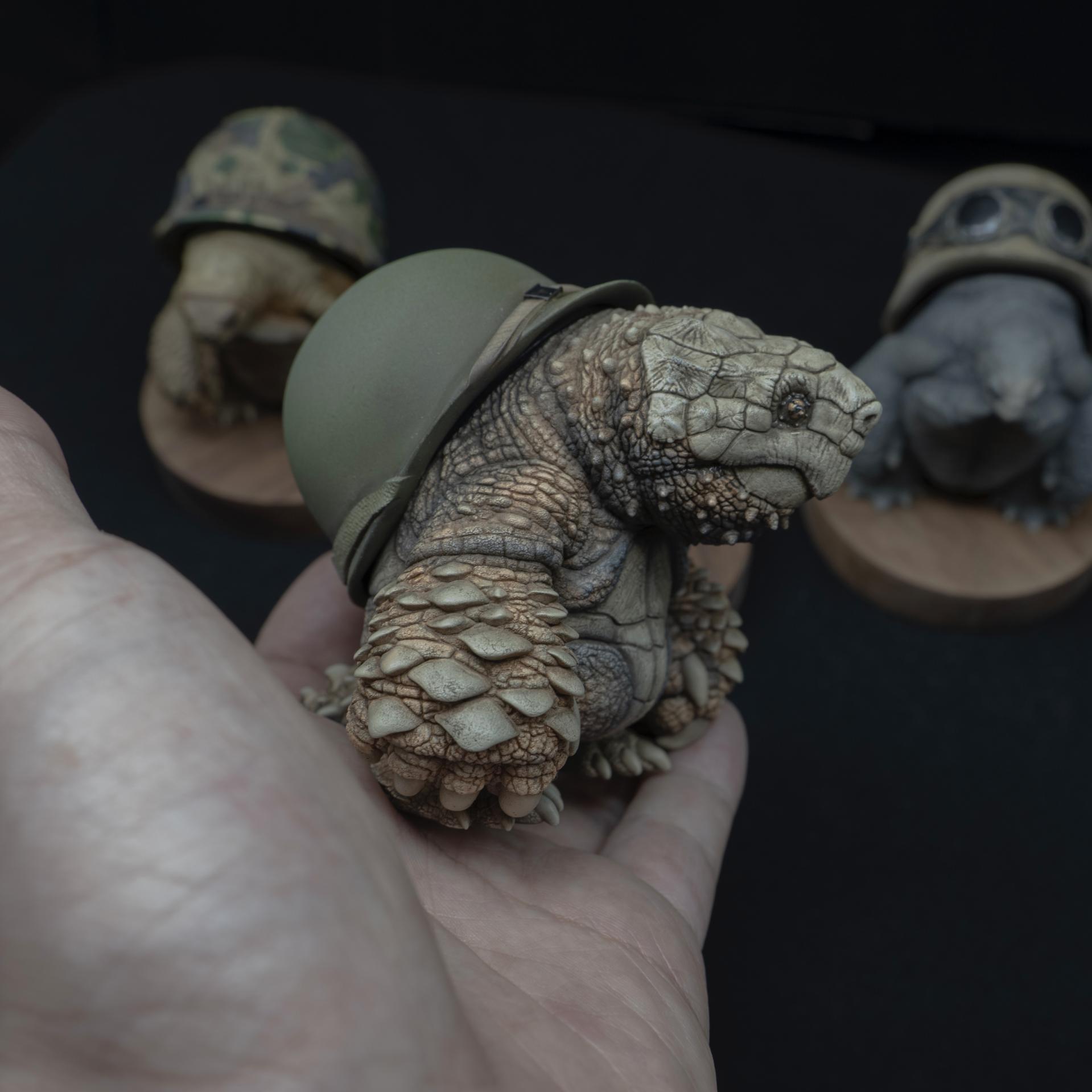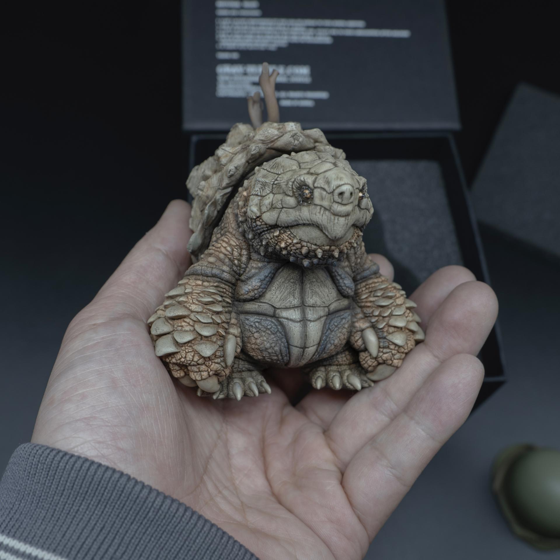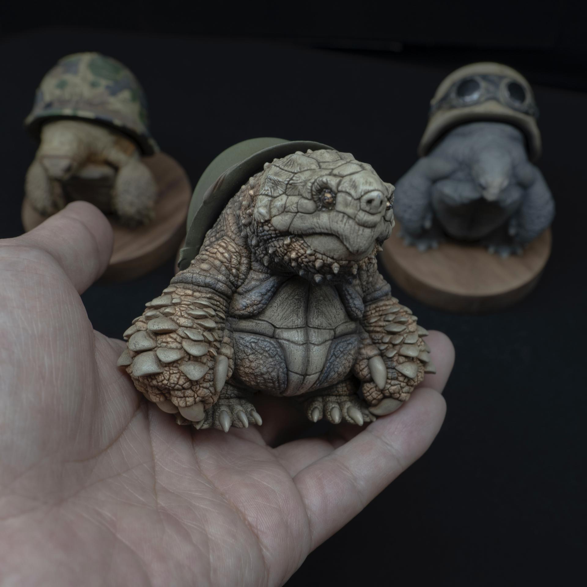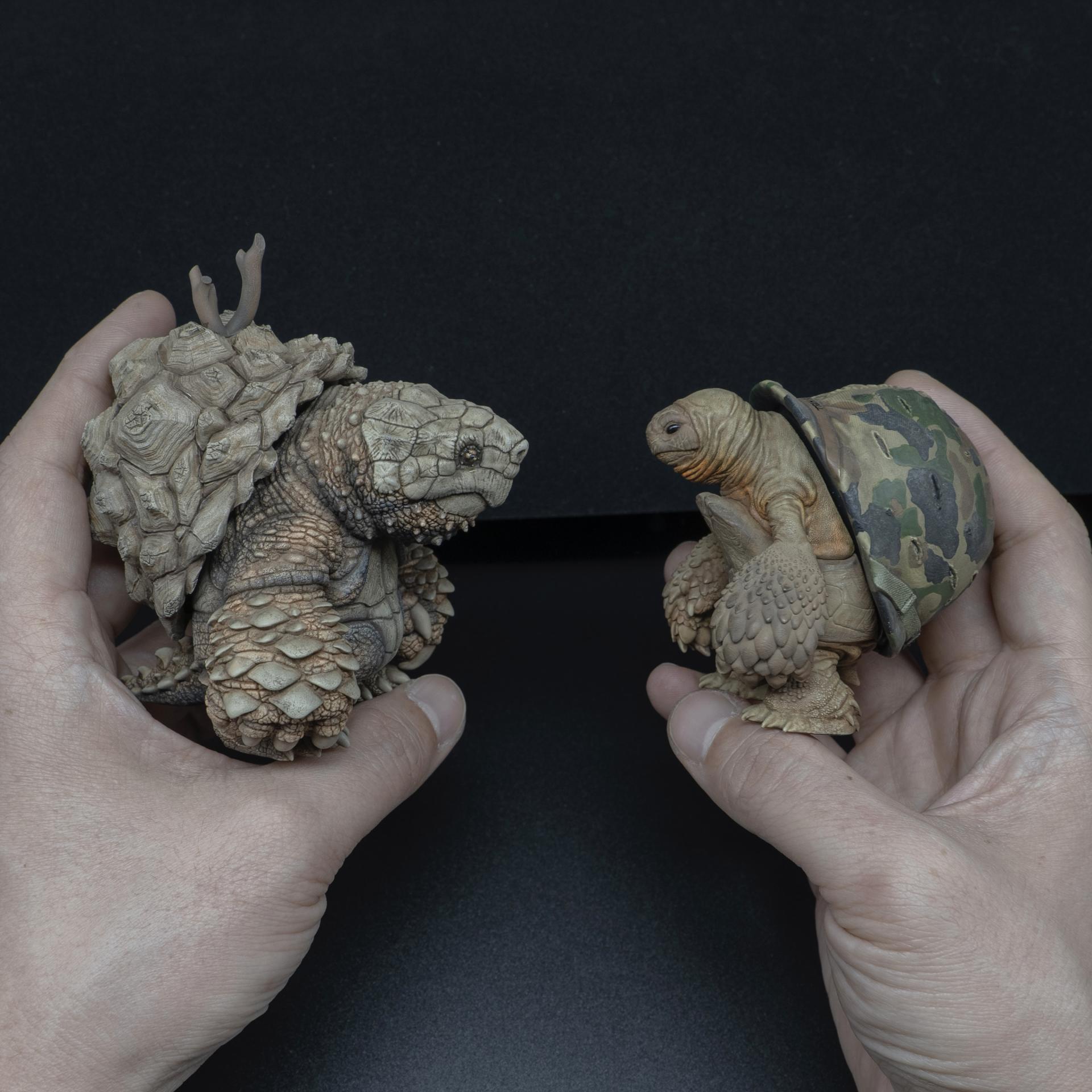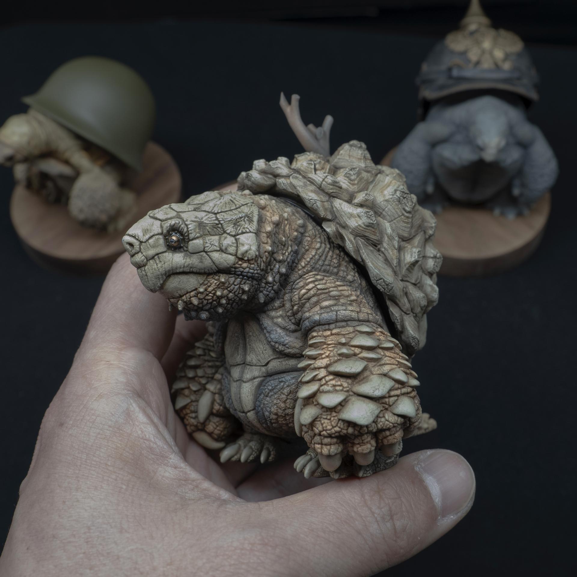 海龟佩戴的头盔象征着精神稳定和身体保护,但它们也传达了关于人类恐惧和焦虑的信息。