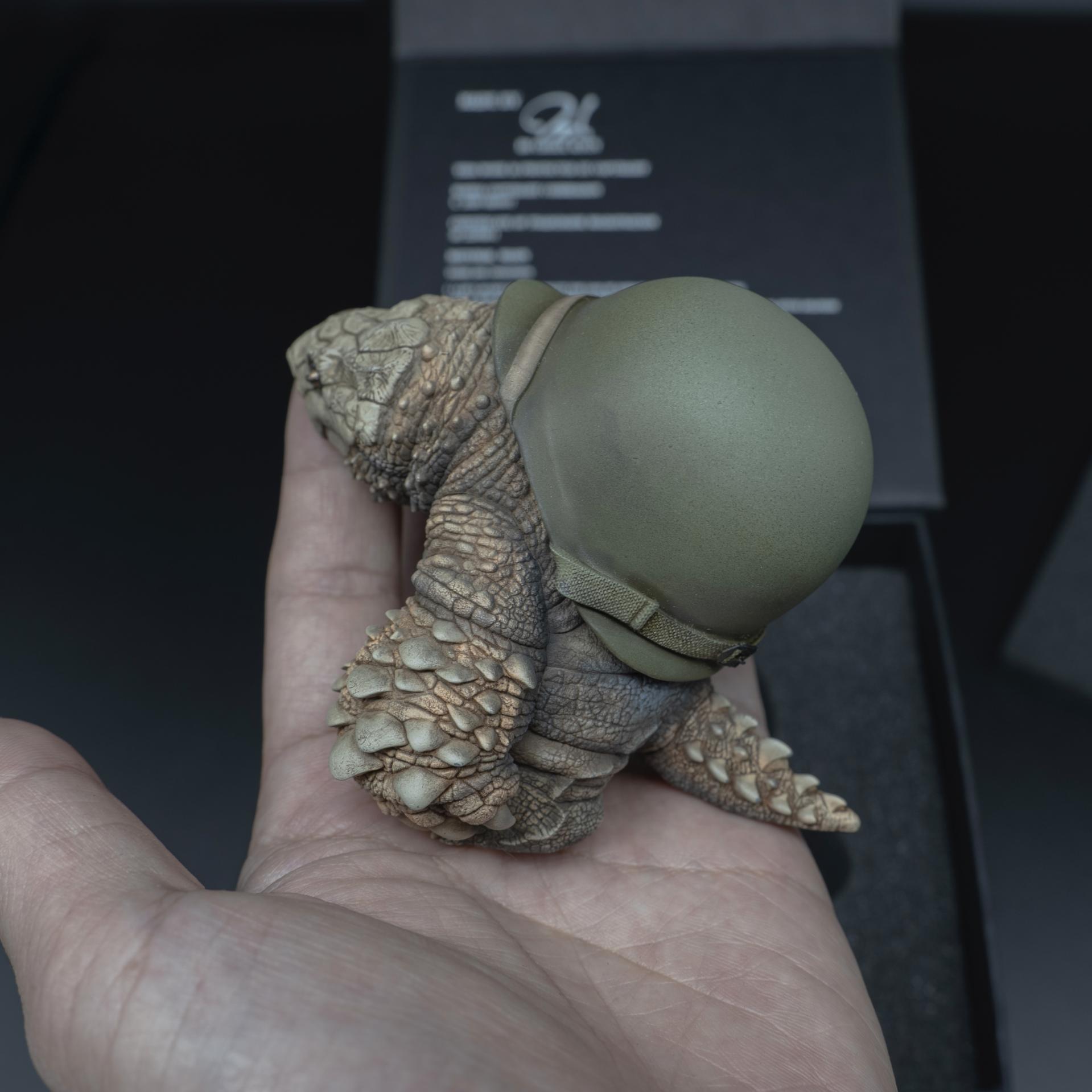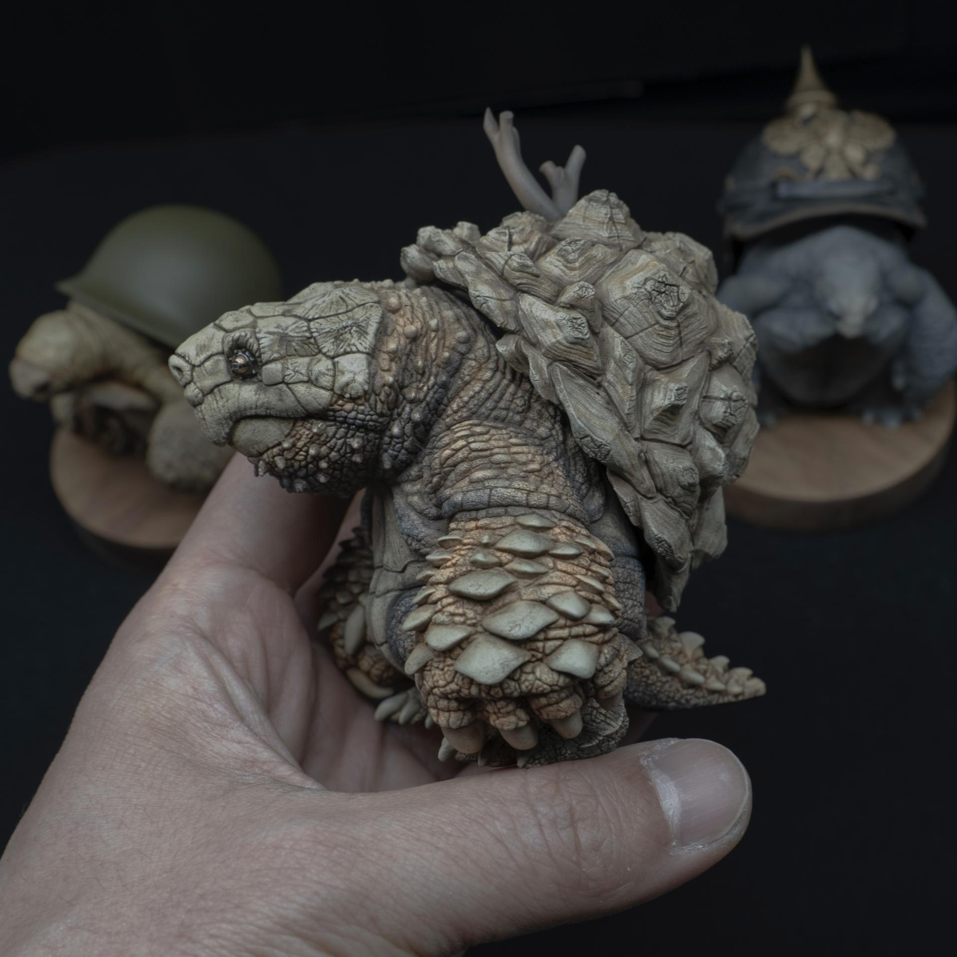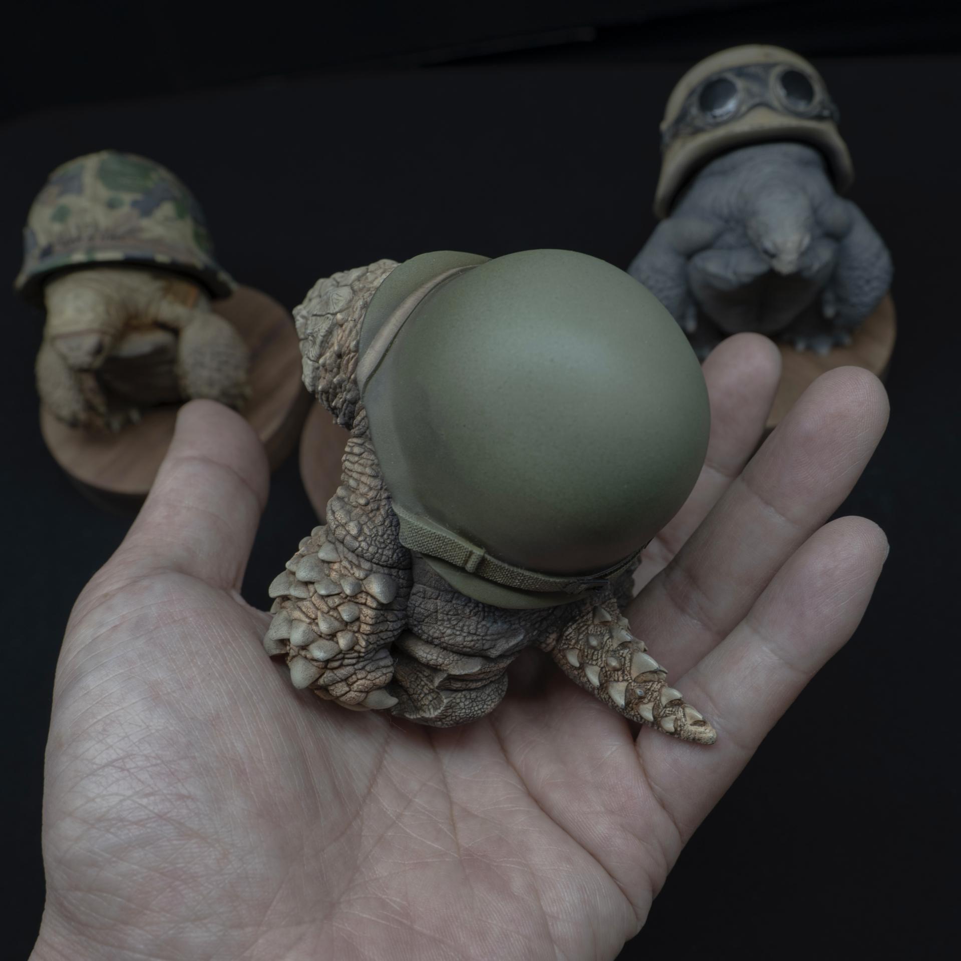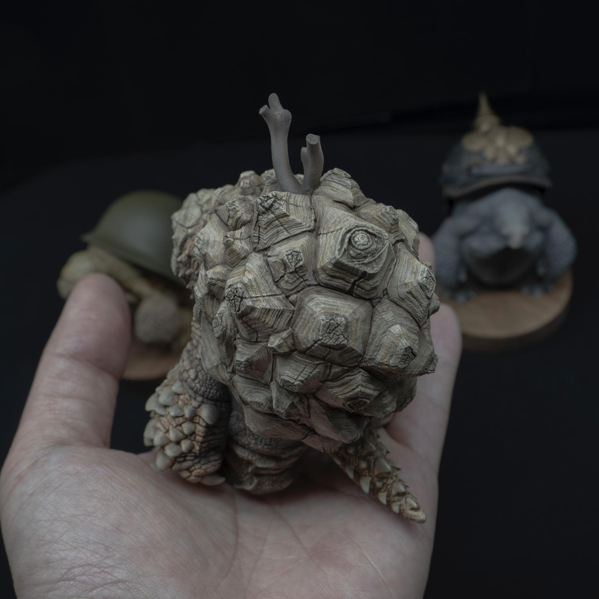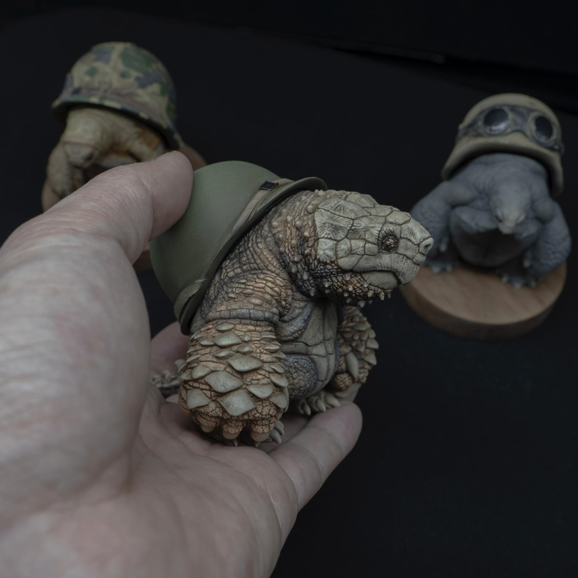 海龟佩戴的头盔象征着精神稳定和身体保护,但它们也传达了关于人类恐惧和焦虑的信息。