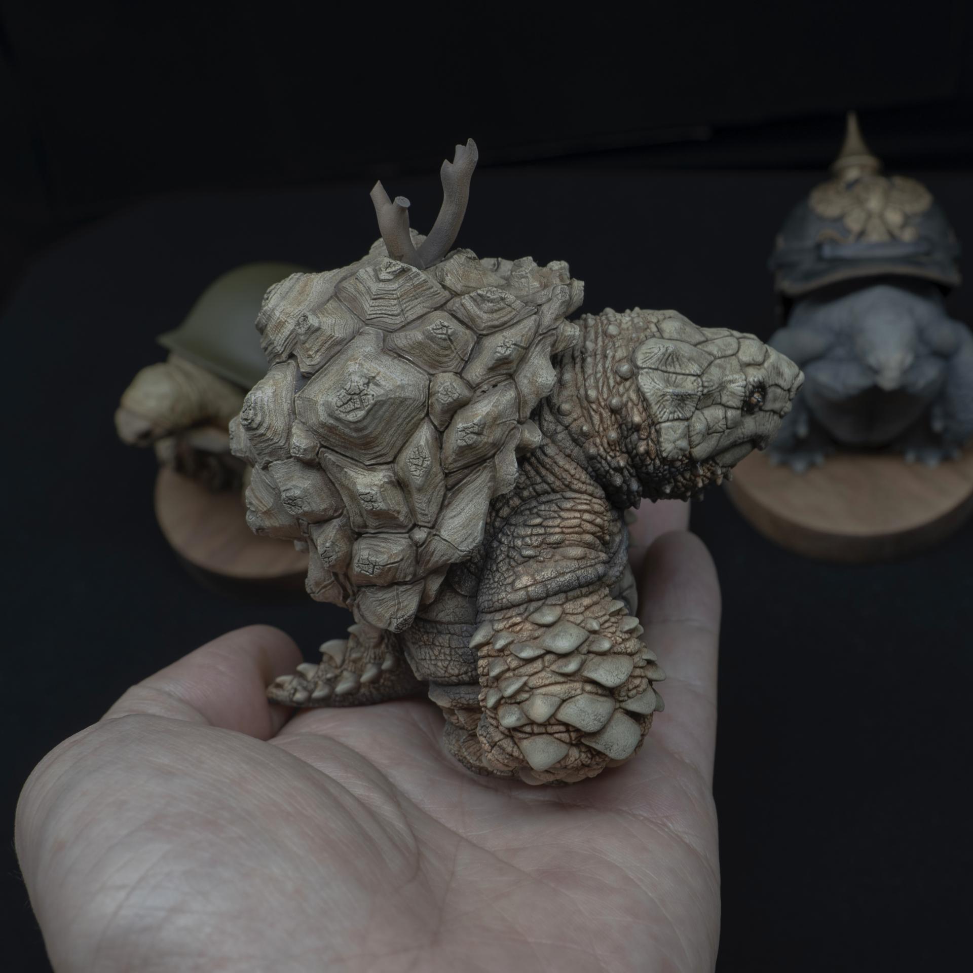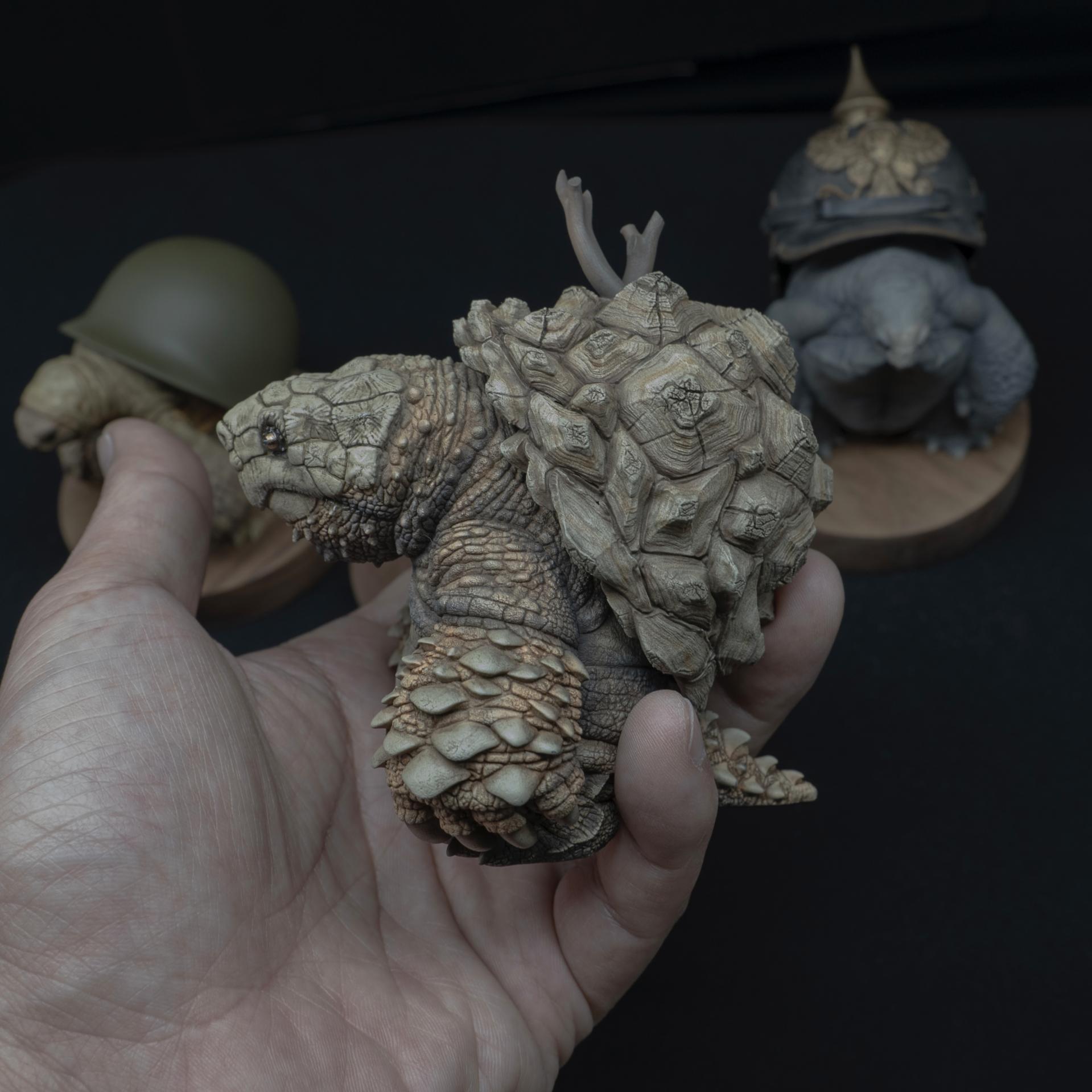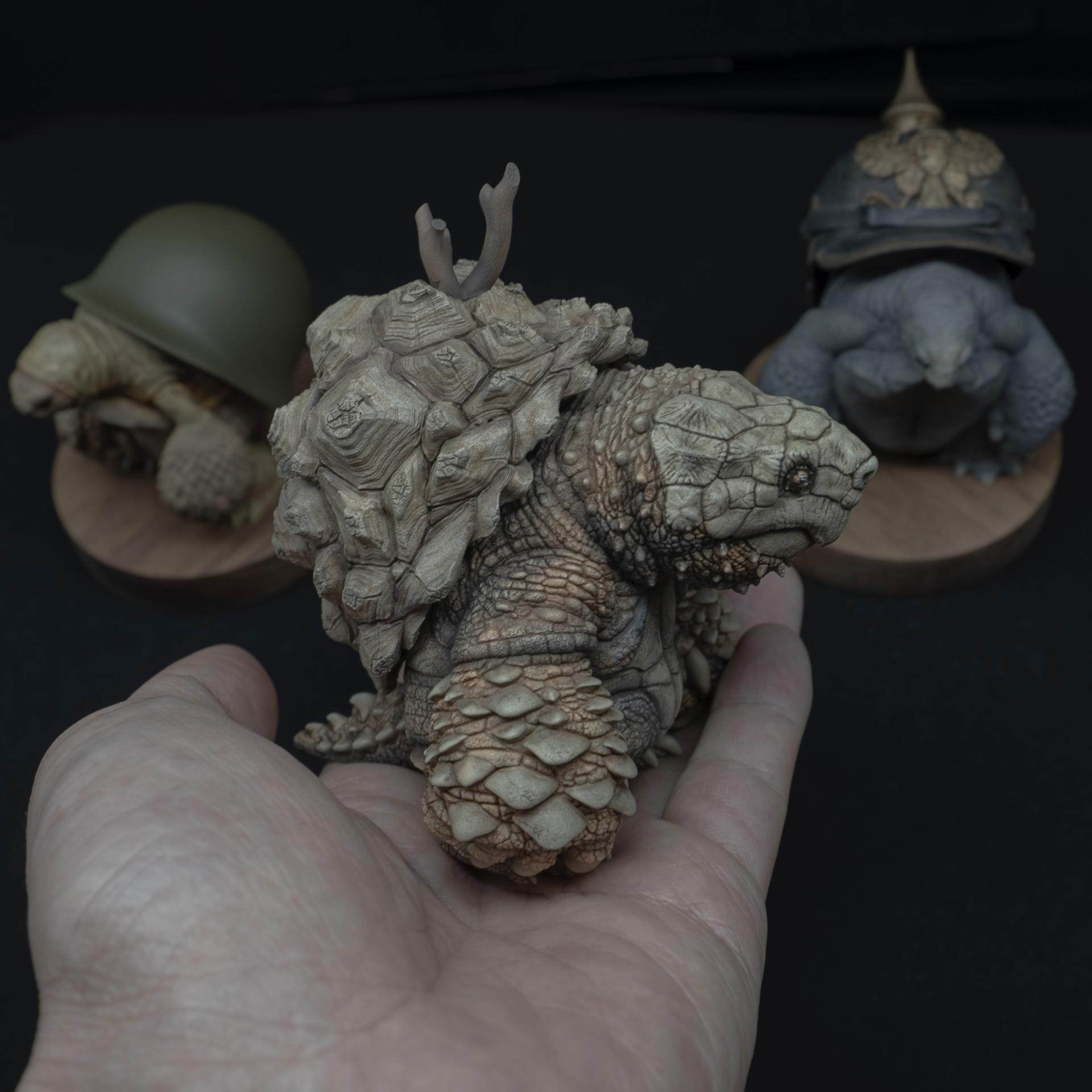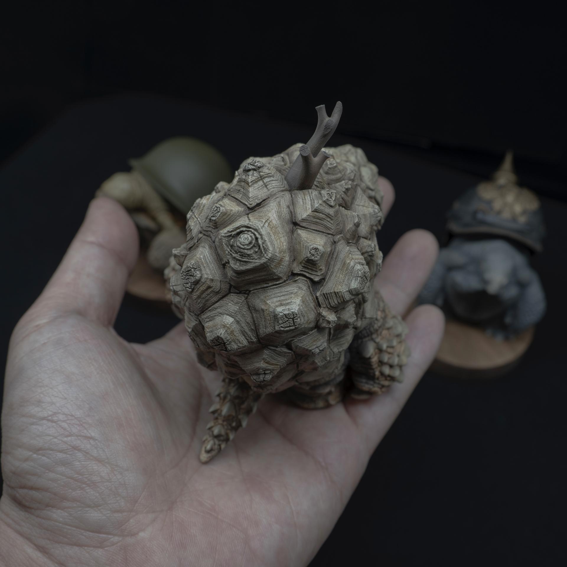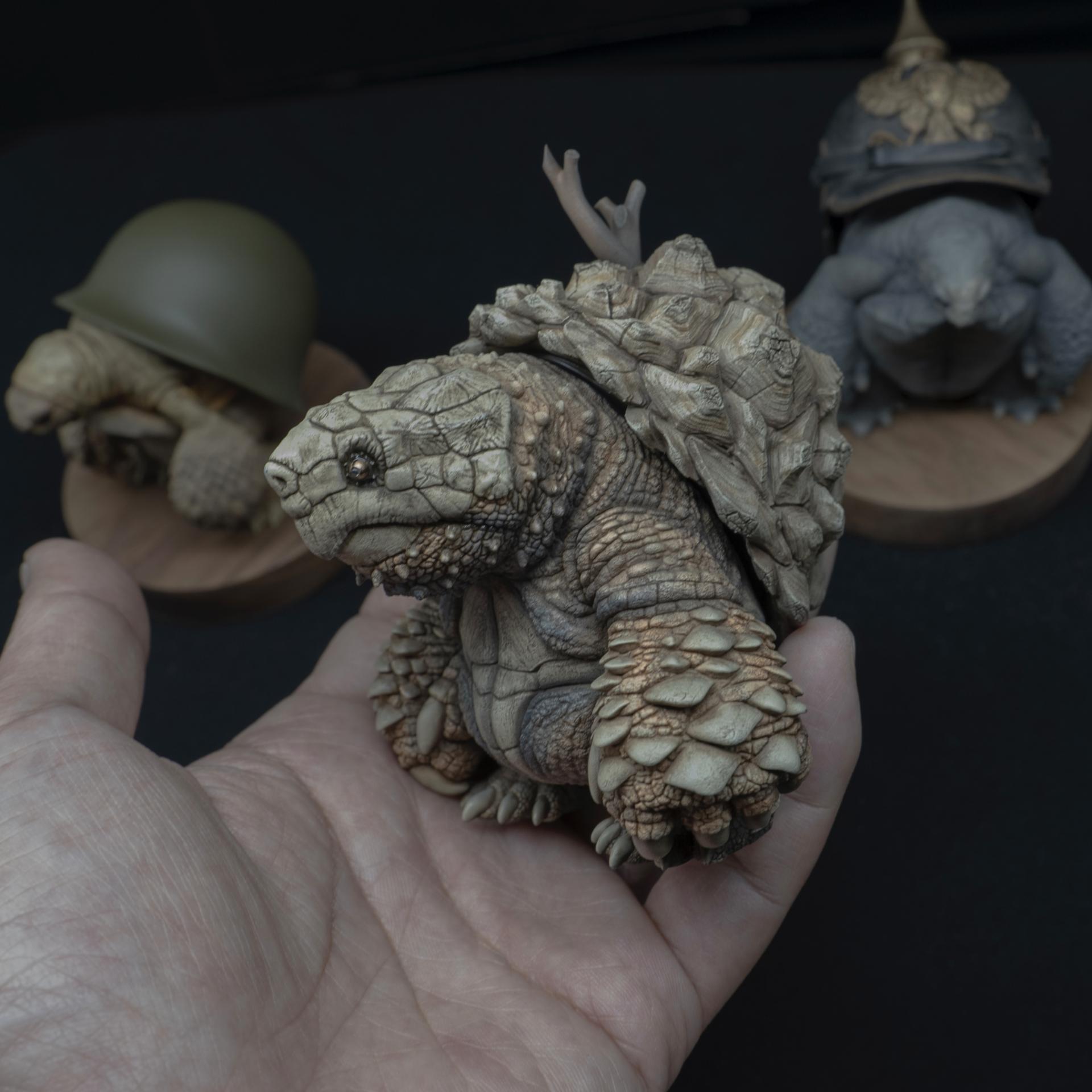 海龟佩戴的头盔象征着精神稳定和身体保护,但它们也传达了关于人类恐惧和焦虑的信息。
